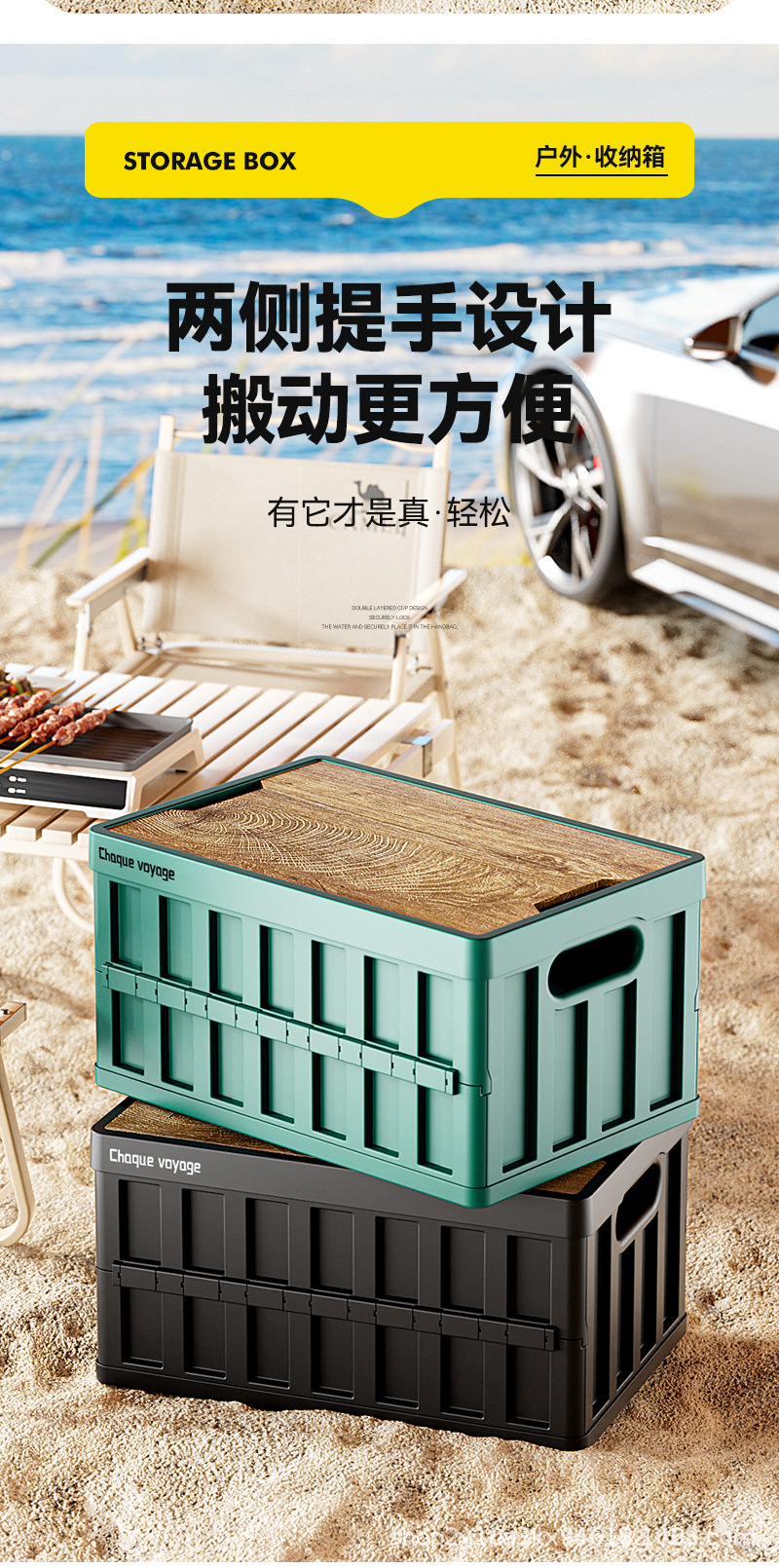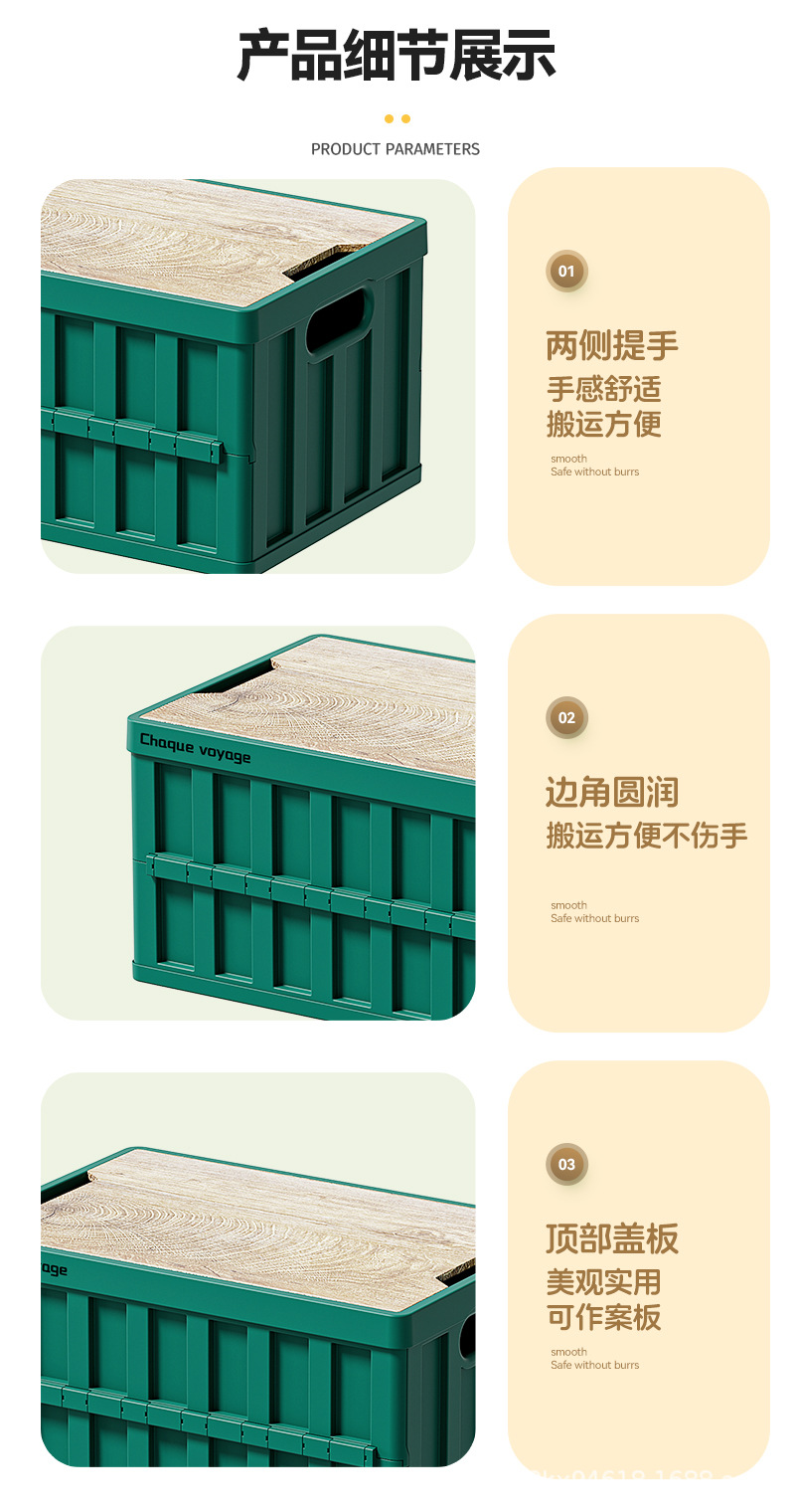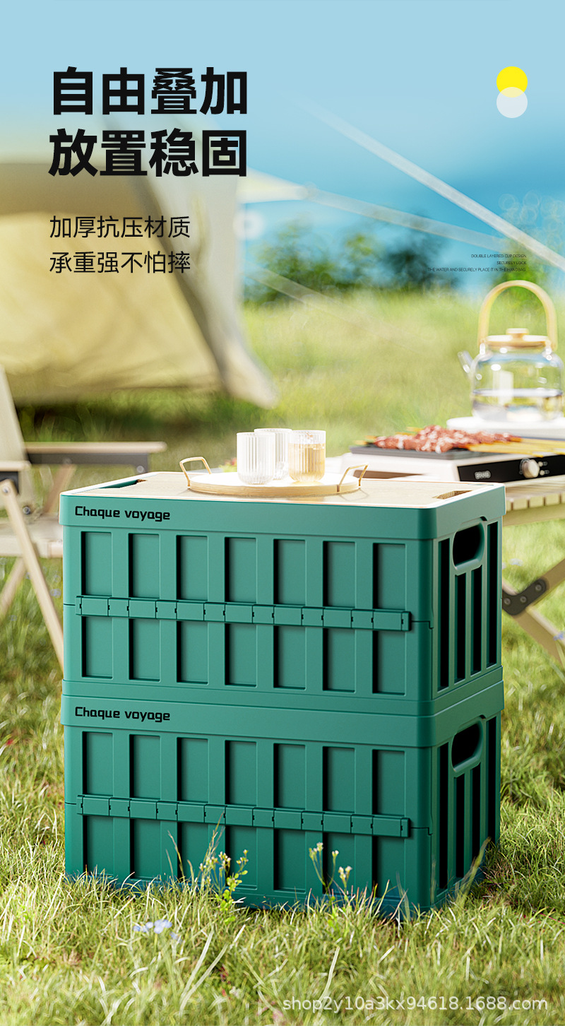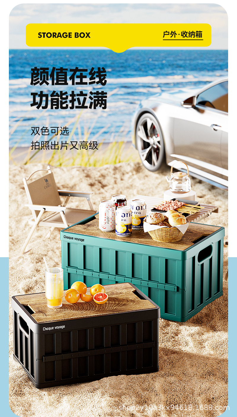折叠收纳箱户外多功能露营折叠收纳箱 后备箱车载便携加厚木盖
