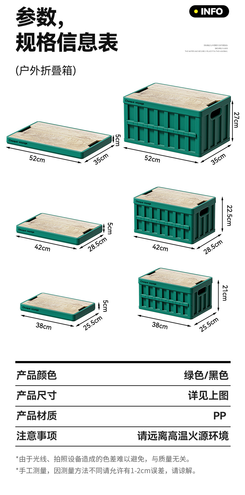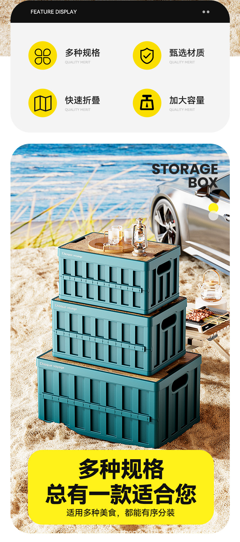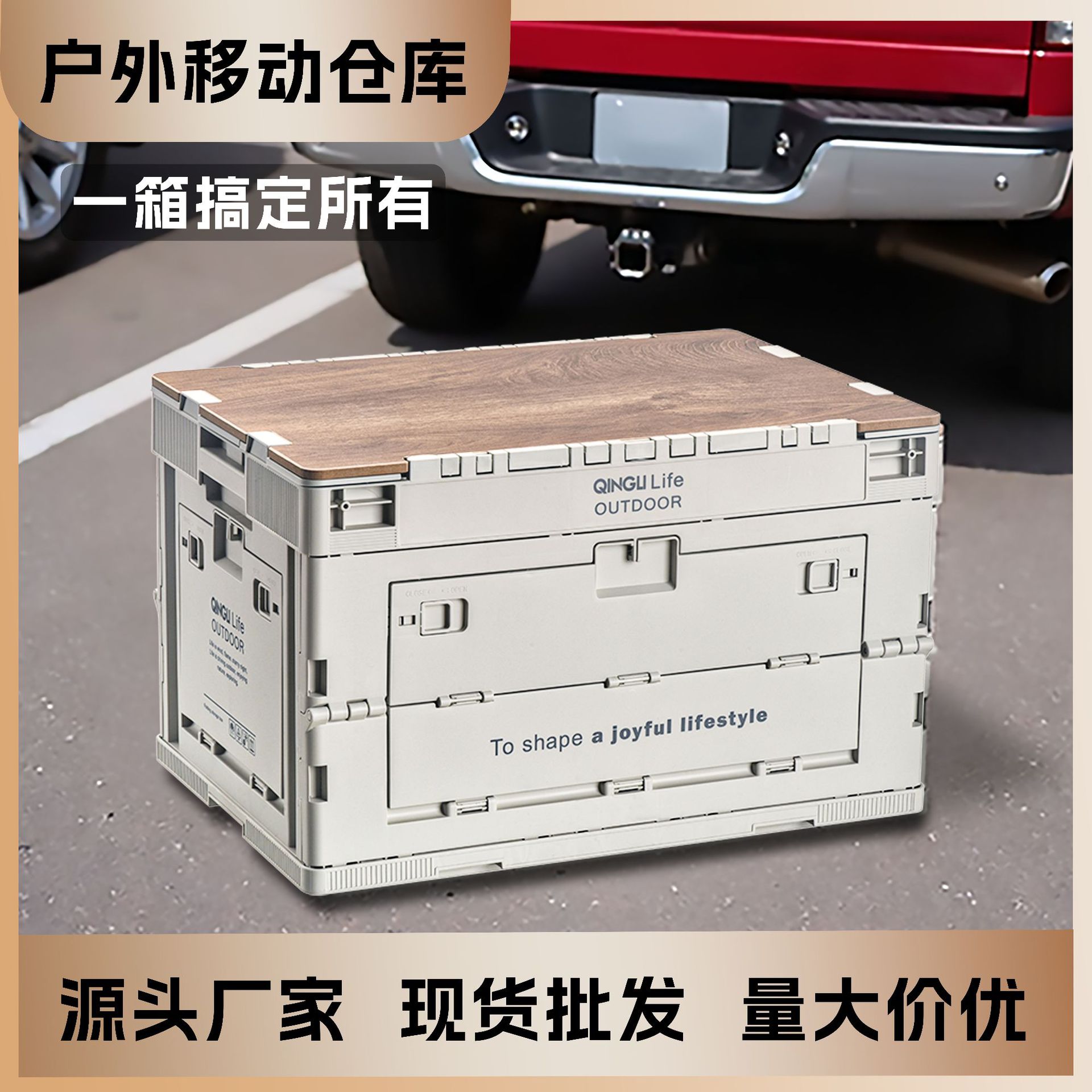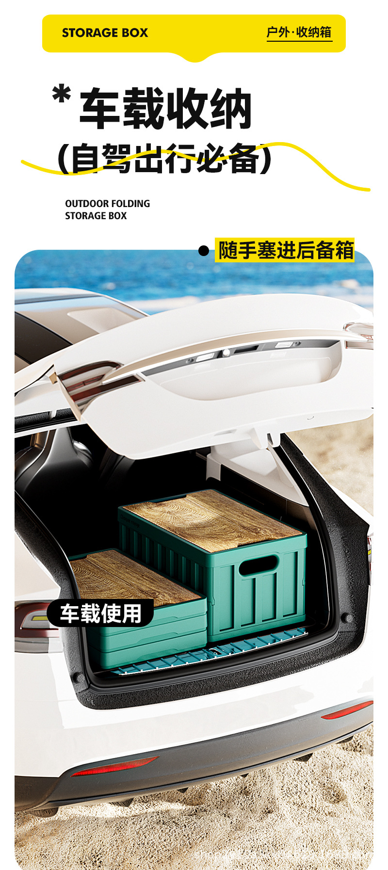 折叠收纳箱户外多功能露营折叠收纳箱 后备箱车载便携加厚木盖