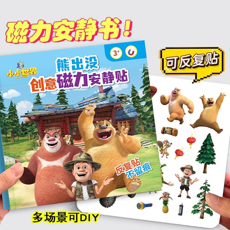 正規版熊出没磁気静かな本6男の子diy手作りシーンマグネットステッカー益智無裁断磁石玩具