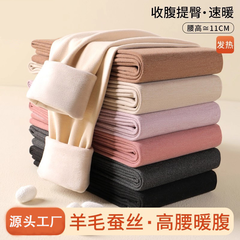 羊毛蚕丝亲肤德绒秋裤内穿发热加绒加厚高腰高弹保暖打底裤女秋冬