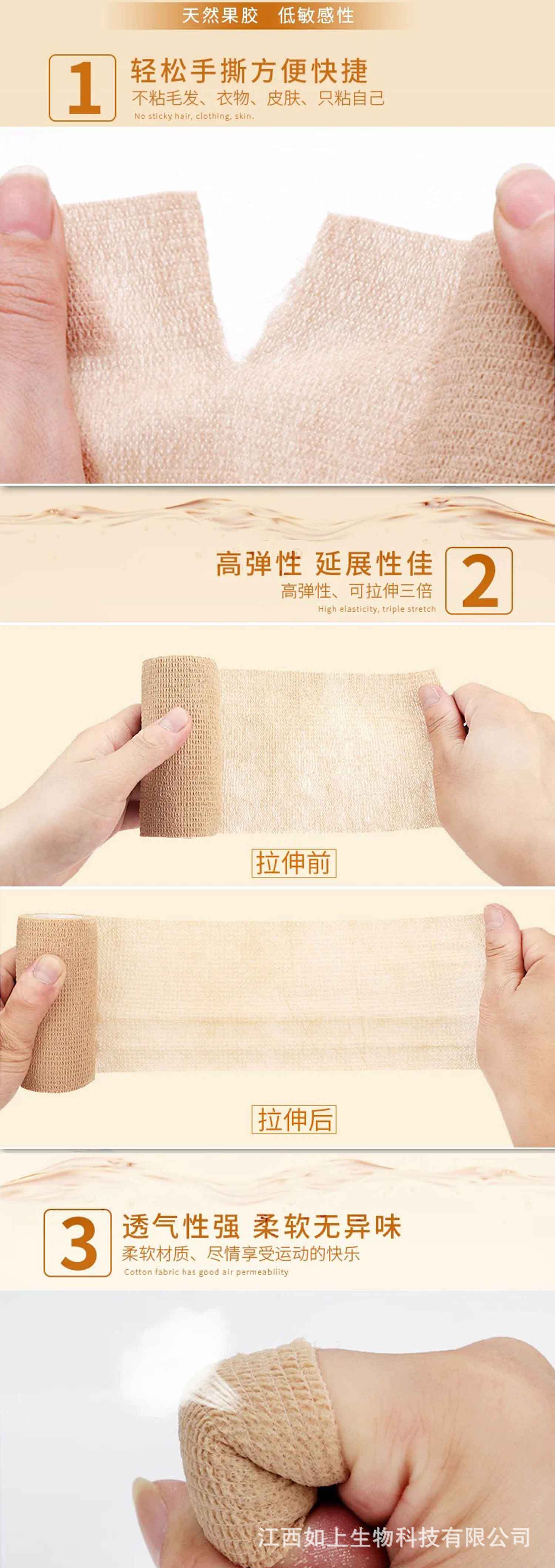 Rusun 工場直販 自己粘着性弾性包帯 アウトドアトレーニング用 傷包帯 腕用保護包帯 携帯用包帯