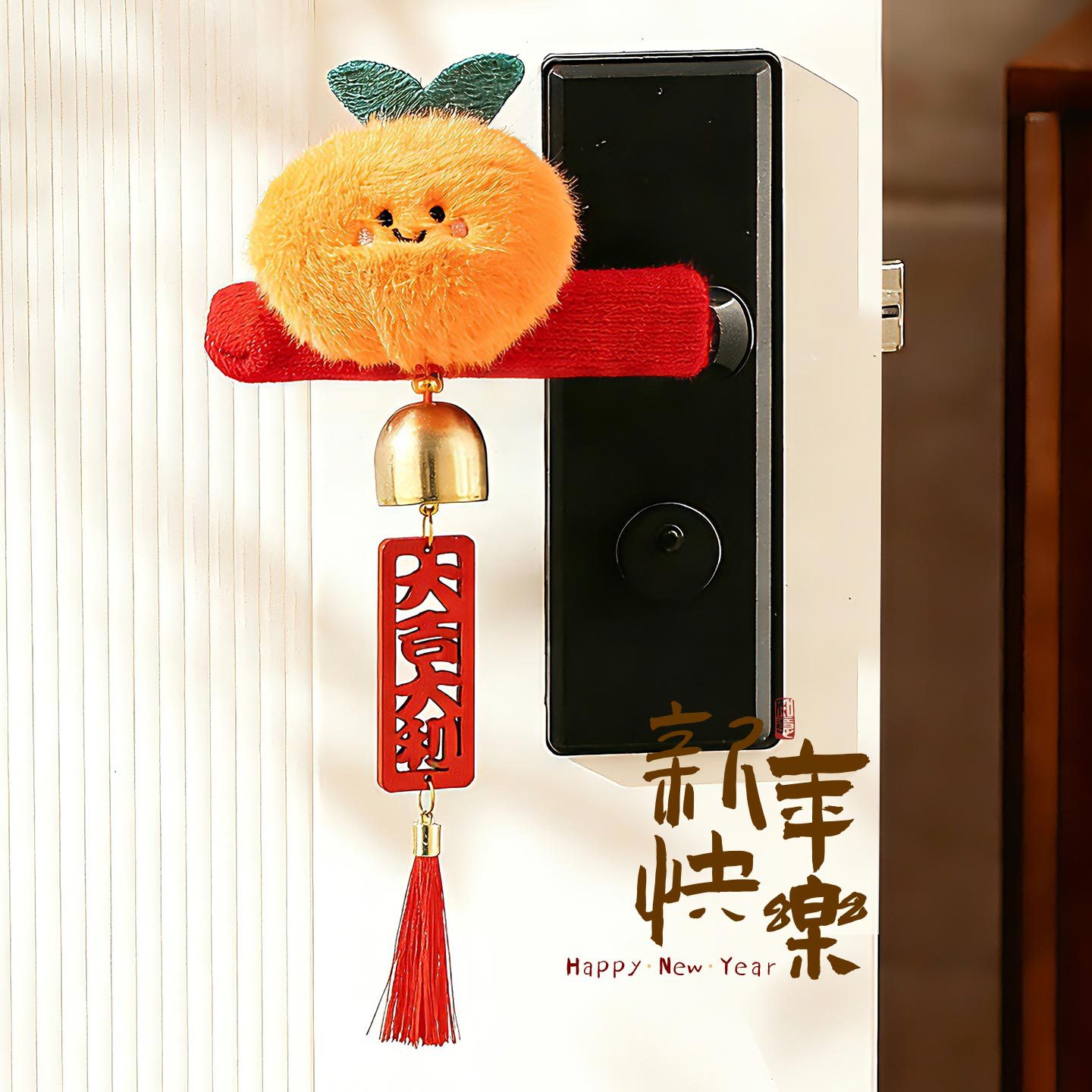 新年门挂柿柿如意门把手装饰新年客厅玄关商场装饰柿子挂件