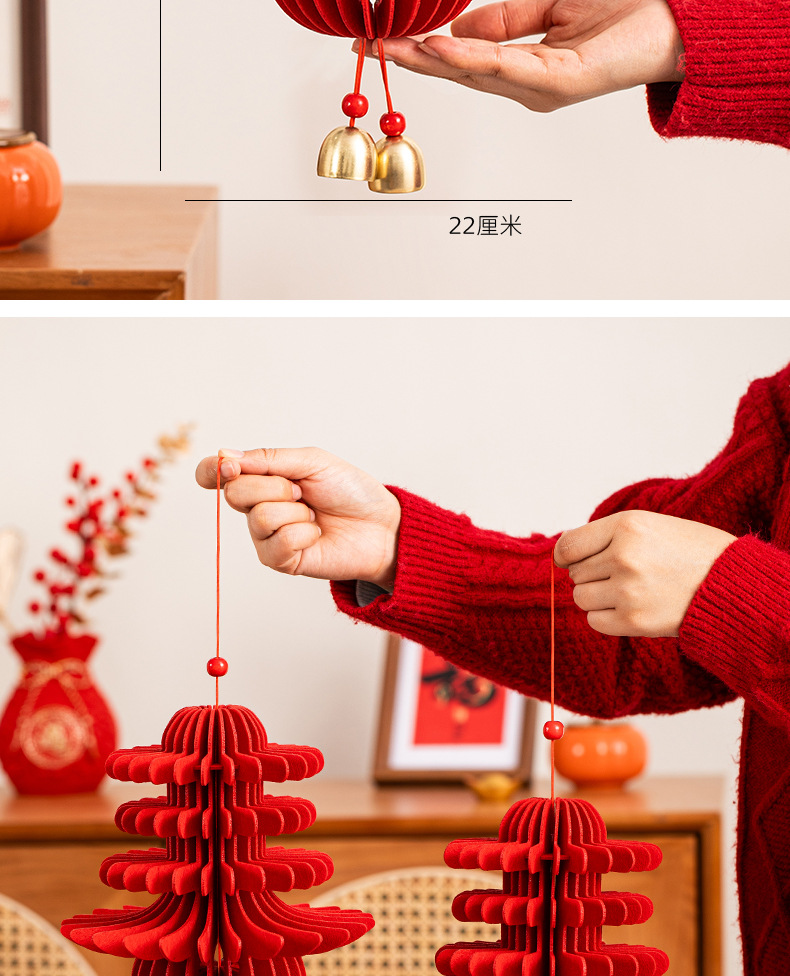 旧正月飾り 春節 屋外装飾 新年ツリー飾り 2026年 新型 馬年 大赤色 小提灯 吊り下げ飾り 卸売