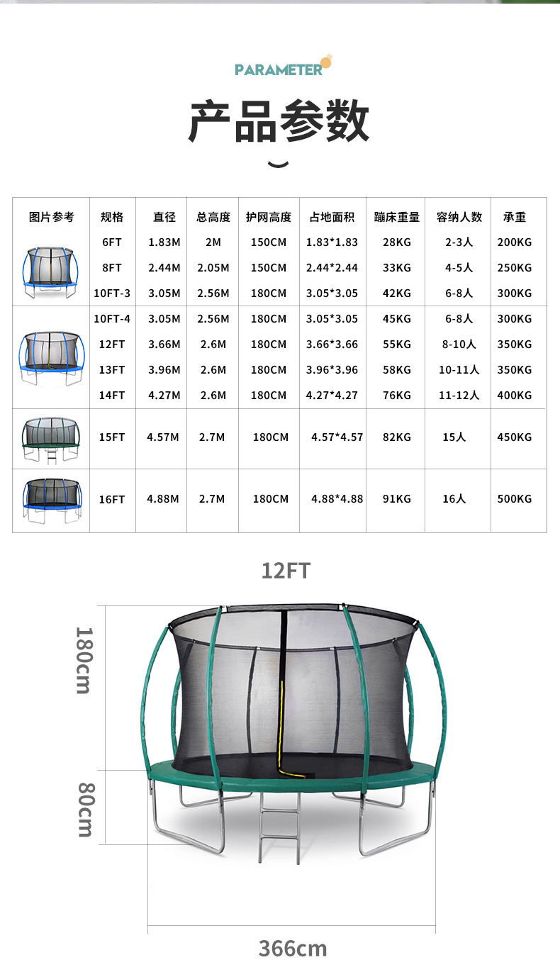 6-16フィートトランポリン家庭用子供室内商用ジャンプベッド屋外保護ネット付き屋外大人ジャンプベッド