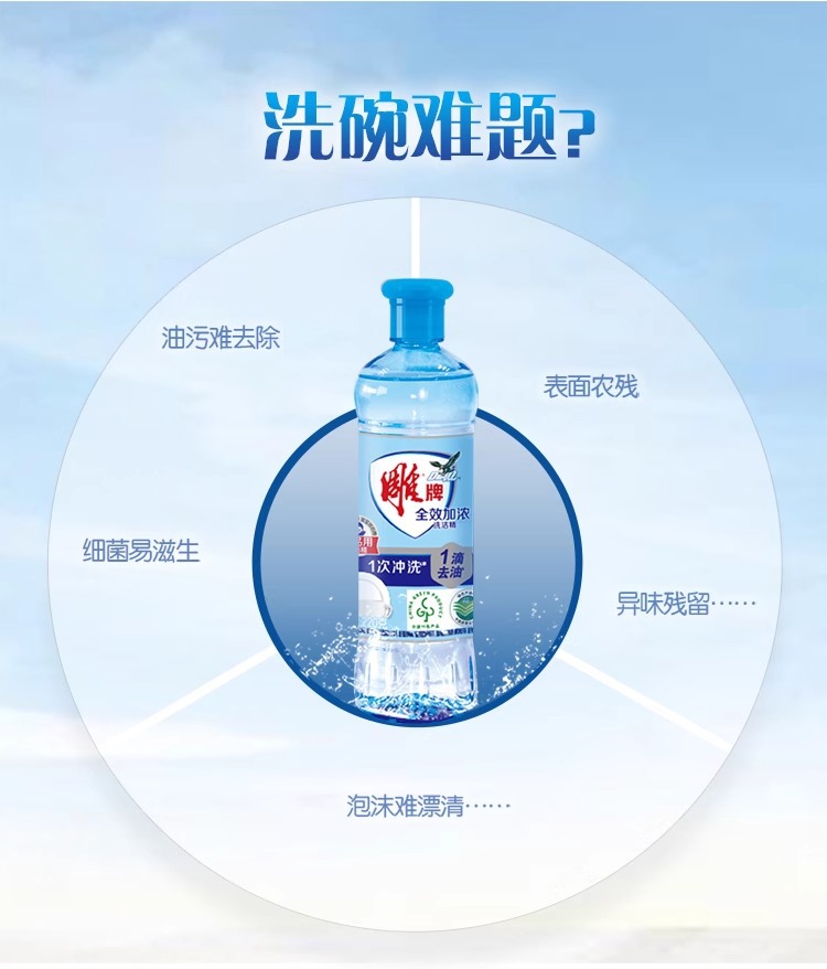 Diao ブランドのフルエフェクト濃縮食器用洗剤、油分を除去し、残留物を残さない、留学生寮の家庭用ポータブル洗剤バッチ