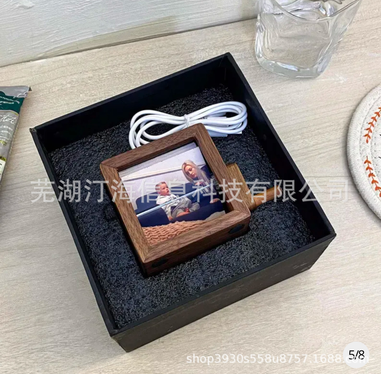 跨境新款母亲节礼物发光手摇翻页书照片机刻字一件定 制8*8胡桃木