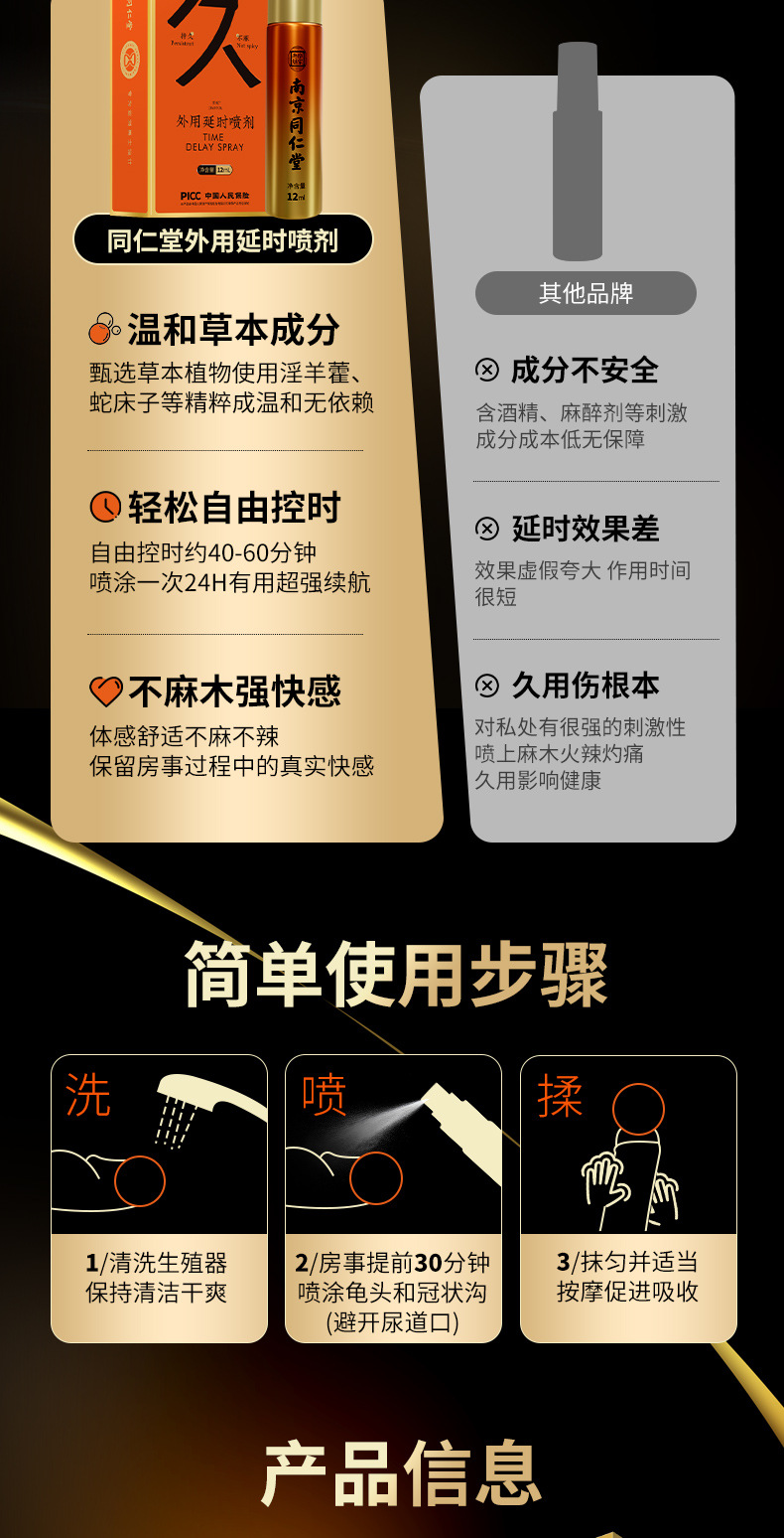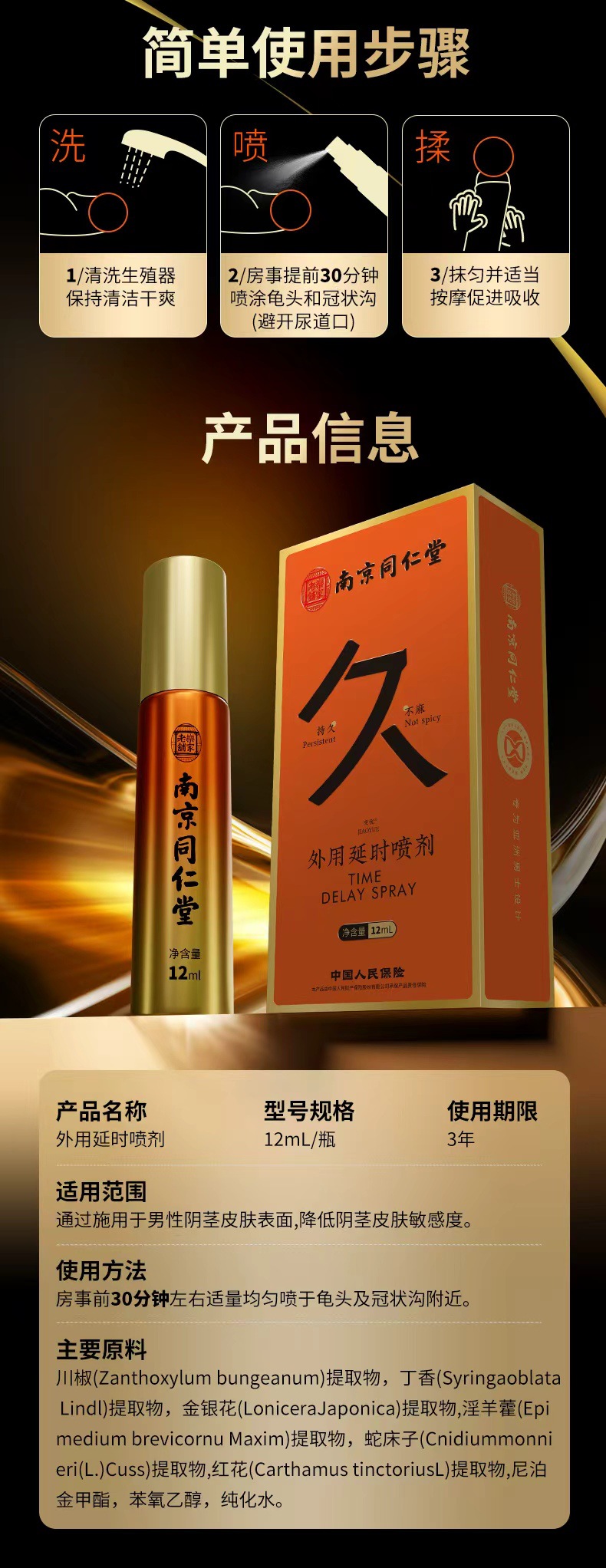 南京銅仁堂メンズ遅延スプレー長期持続非麻痺アダルト製品ウェットワイプ外部遅延薬スプレー