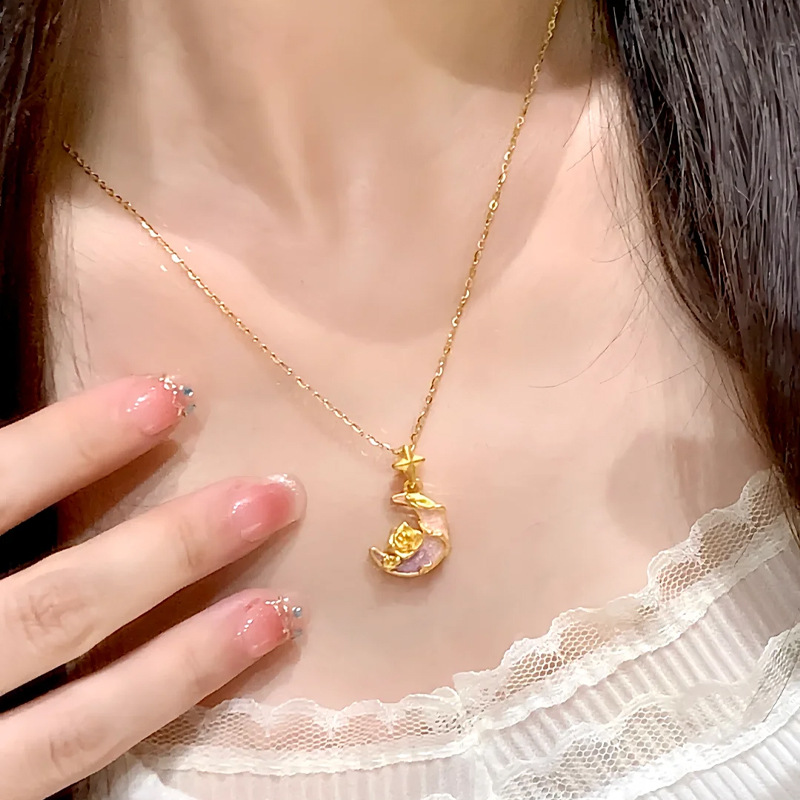 老舗と同じスタイルの砂金ネックレス、十字杵、貔貅、葫芦、蝶のペンダント、ゴールドカラーの鎖骨チェーンジュエリー