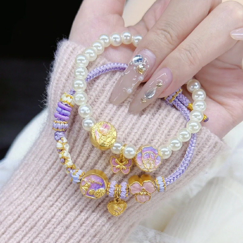 砂金モネガーデンブレスレット 蝶 バラの花 運命の珠 桃の花ビーズ DIY ゴールドカラー アクセサリー ブレスレット 女性用