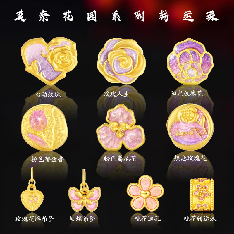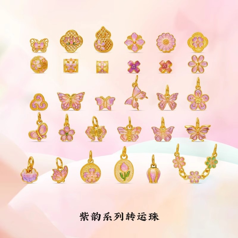 古法沙金故宮シリーズ百転呈祥通孔DIYブレスレット編み縄部品輸送珠路通