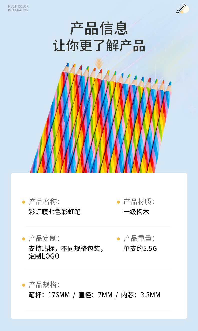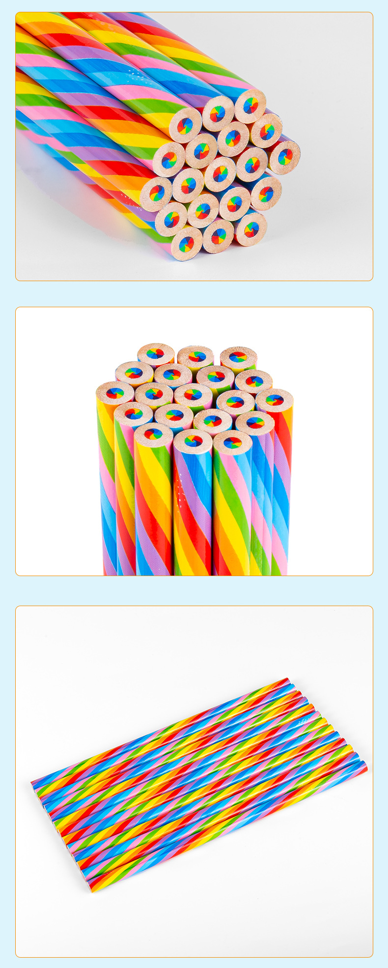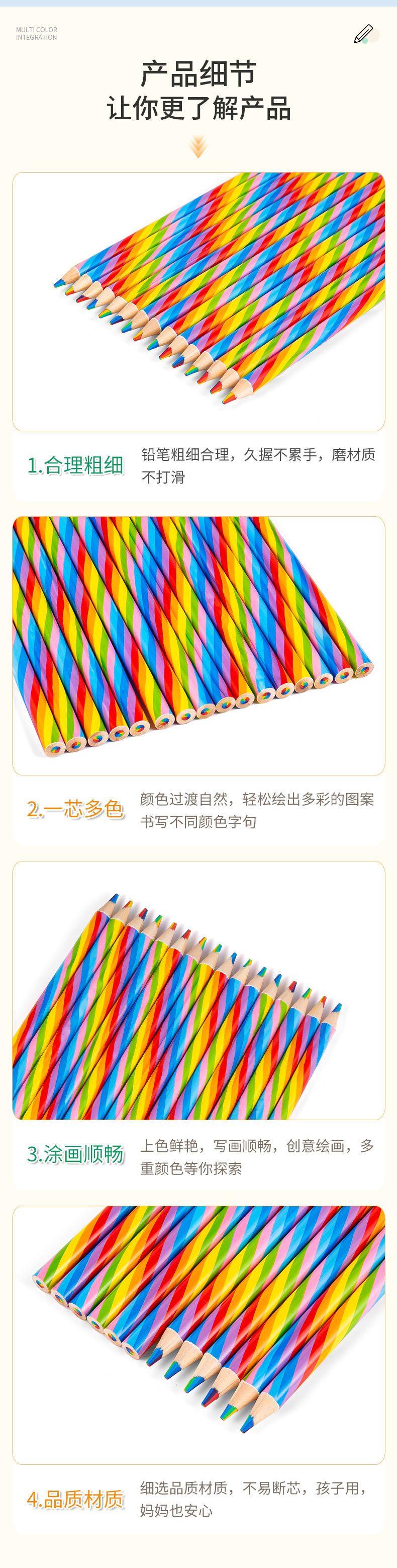 七色入りレインボー鉛筆、カラフルなストライプのヤマブシ材製クリエイティブ鉛筆、1芯で複数色が描ける子供用手描き鉛筆