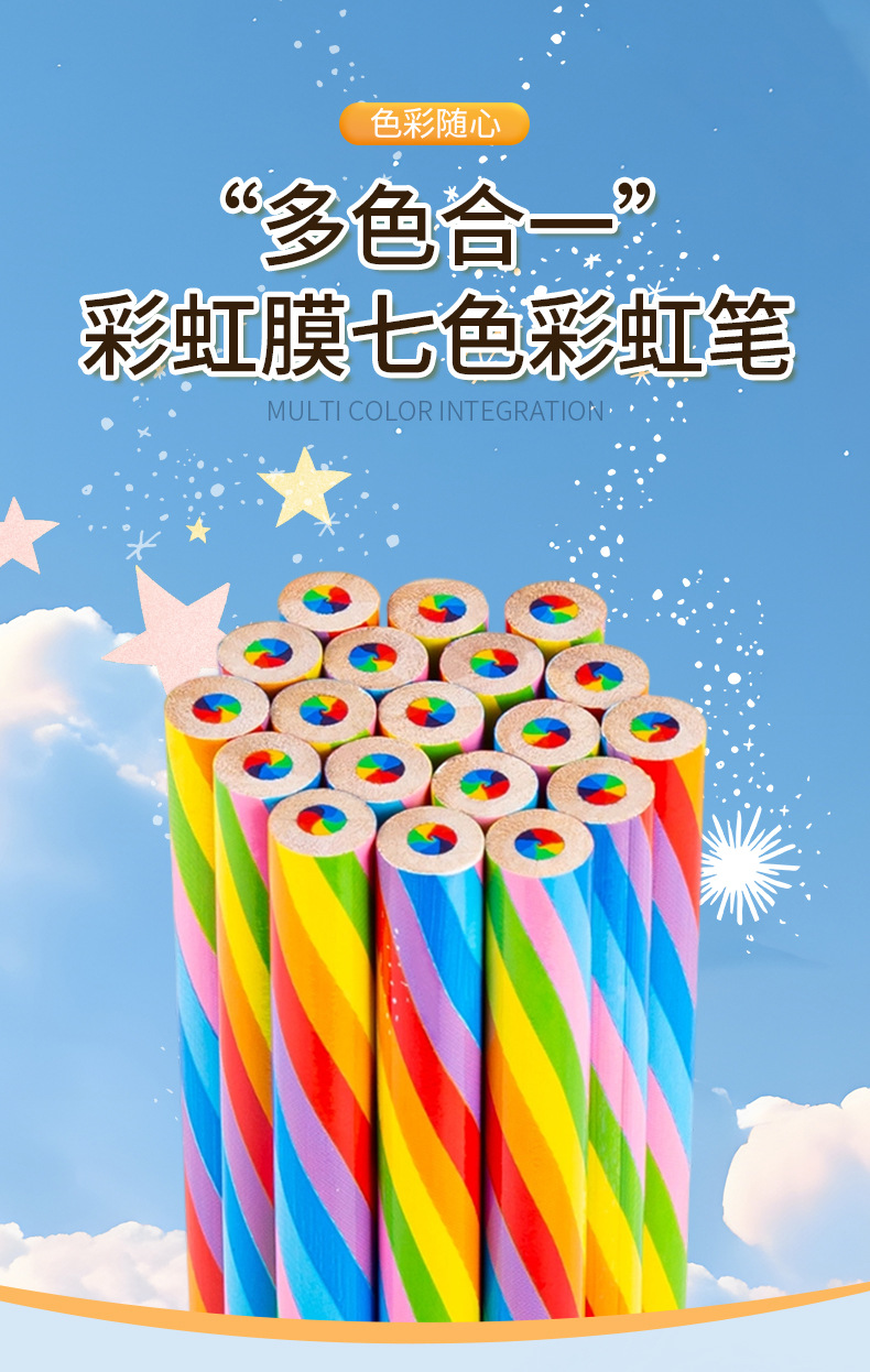 アマゾン七色一体レインボーマルチカラー芯鉛筆 絵画用黒木マルチカラー同芯カラフルクリエイティブ鉛筆