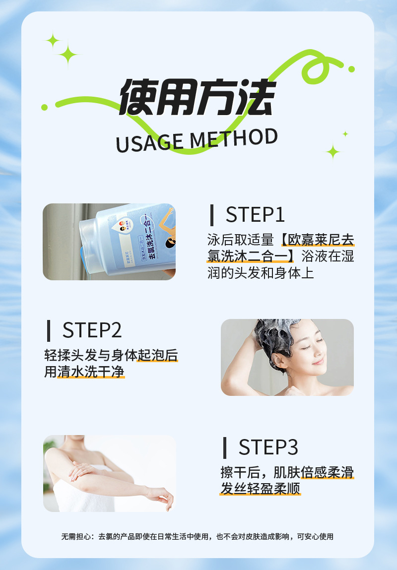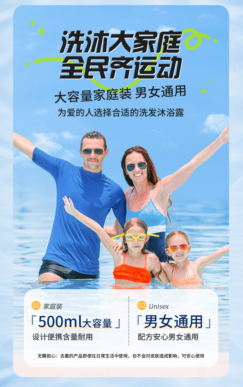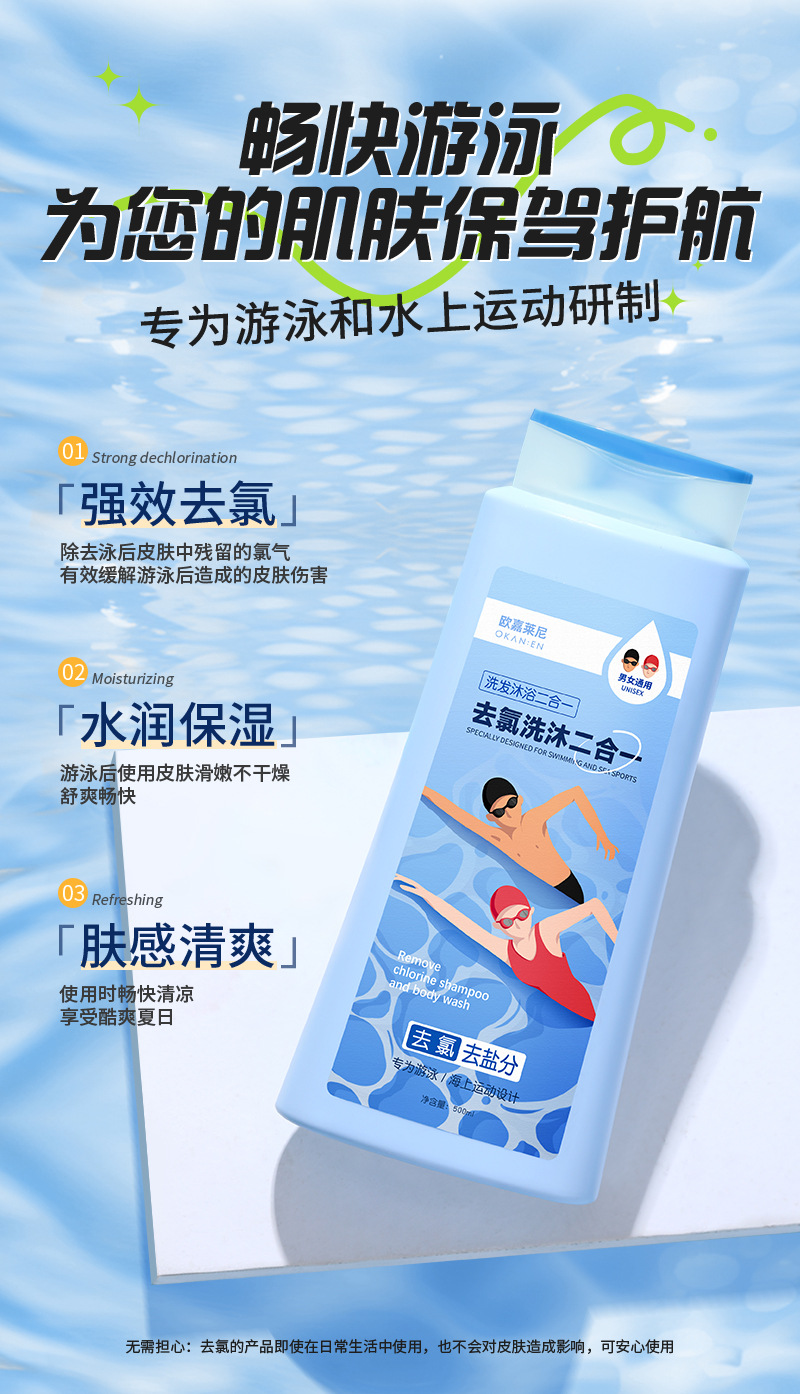 去氯洗发沐浴露二合一男女成人儿童除氯液清洁游泳专用洗发沐浴露