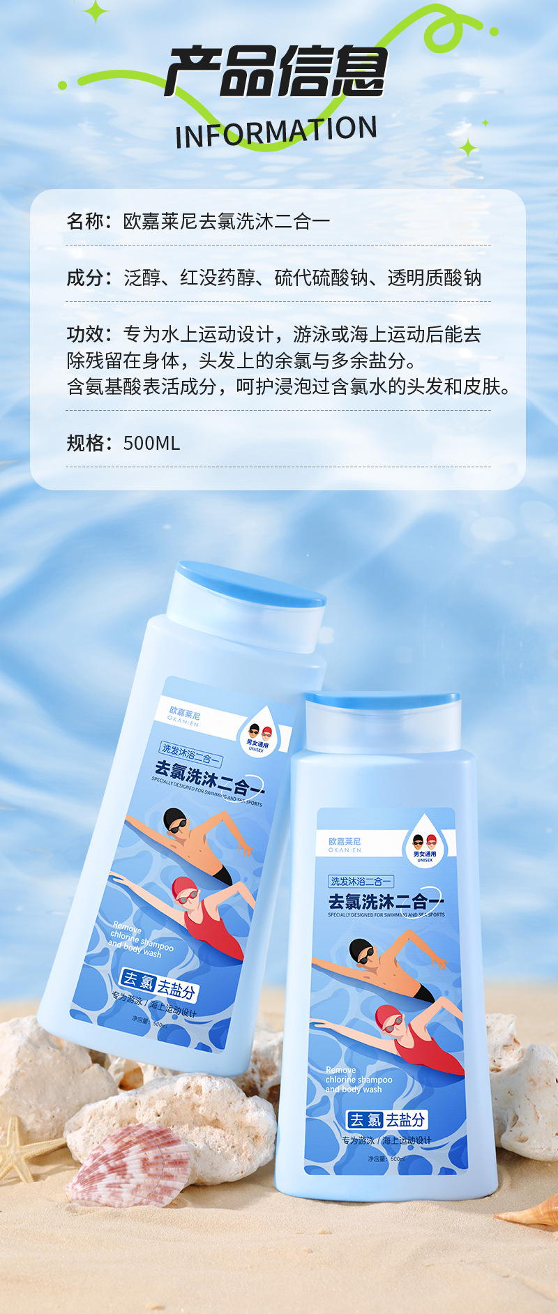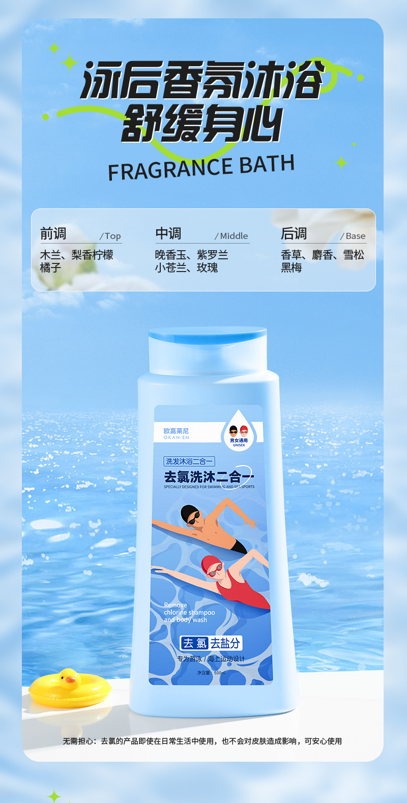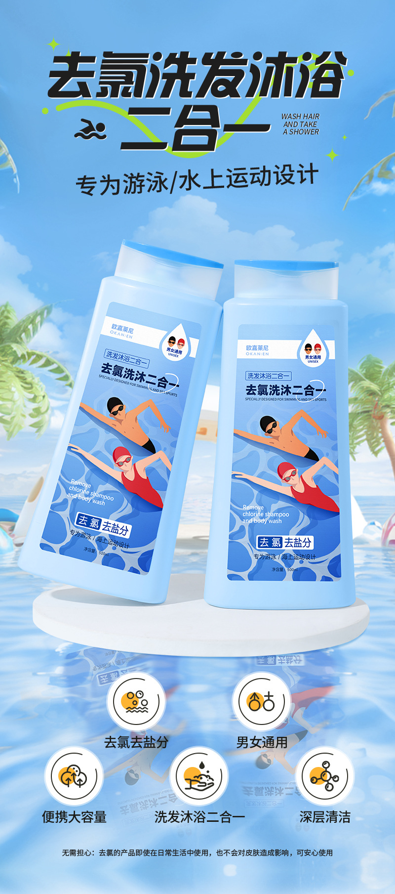 去氯洗发沐浴露二合一男女成人儿童除氯液清洁游泳专用洗发沐浴露