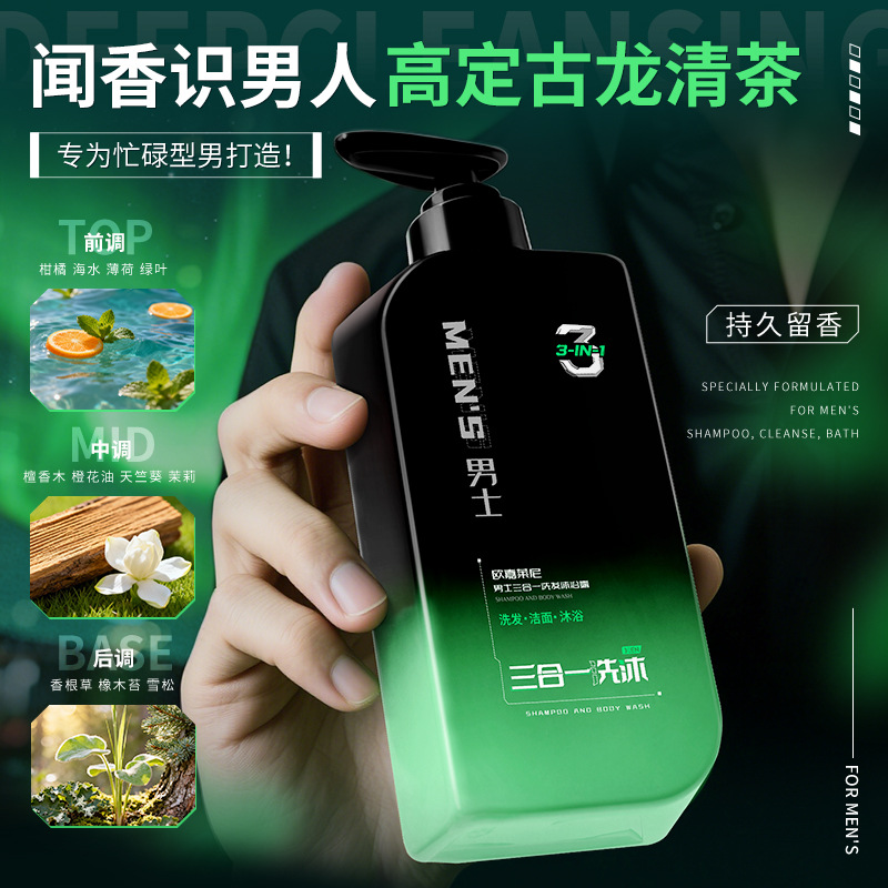 欧嘉莱尼男士三合一洗发沐浴露持久留香水润氨基酸沐浴露洗发水