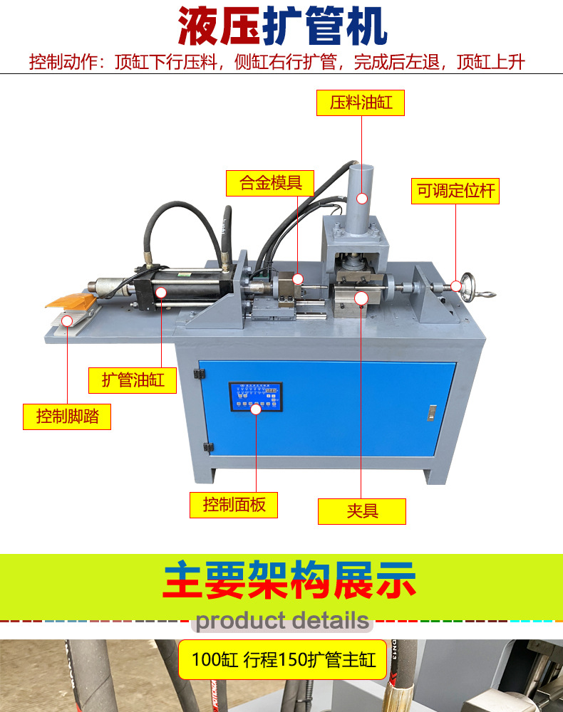 ステンレス鋼管の片側を拡管する油圧式拡管機、拡径用チューブ、拡管用銅管、インテリジェント油圧式拡管機