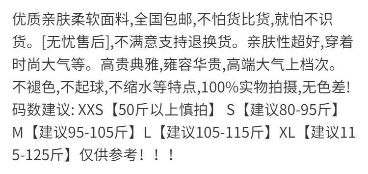 サイズ S は 40-47.5kg を着用することをお勧めします,M は 47.5-52.5kg を着用することをお勧めします,L は 52.5-57.5kg を着用することをお勧めします,XL は 57.5-62.5kg 着用を推奨します