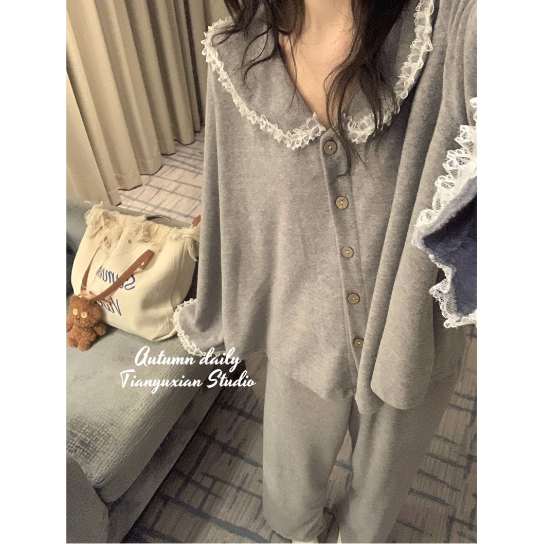 2025韩系ins睡衣女春秋季可爱花边娃娃领长袖长裤网红家居服套装