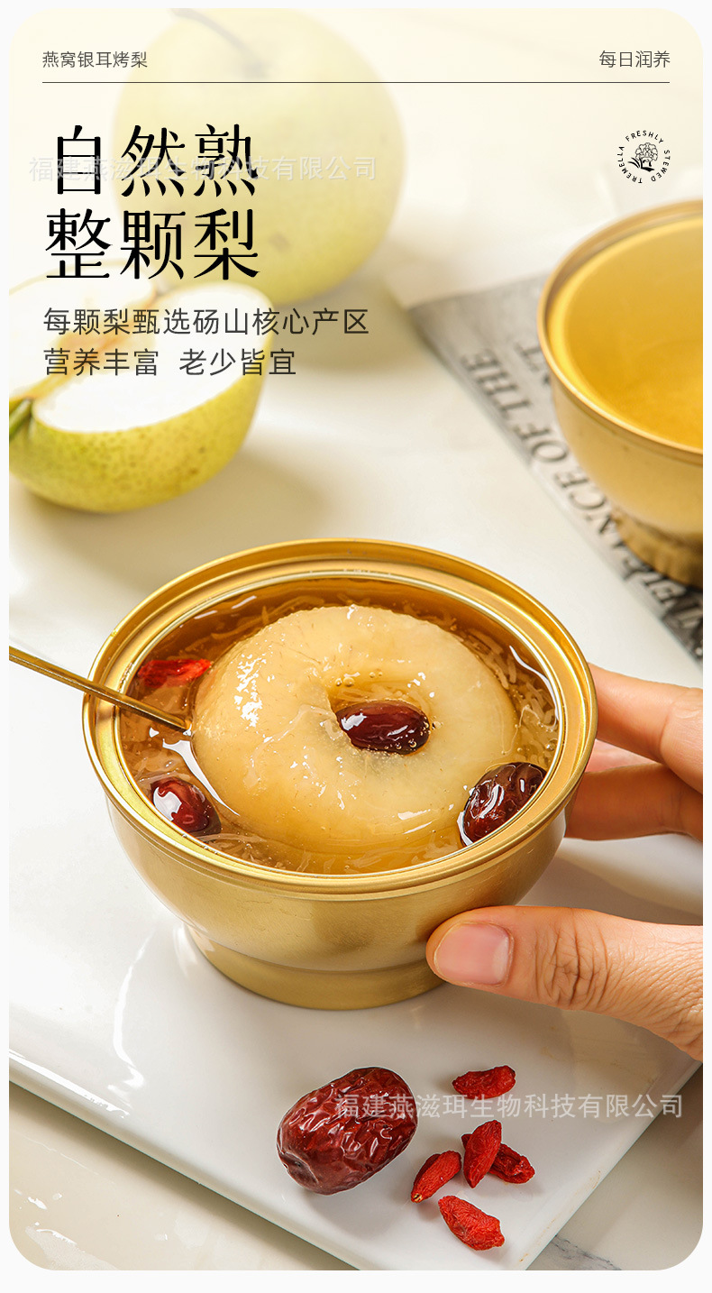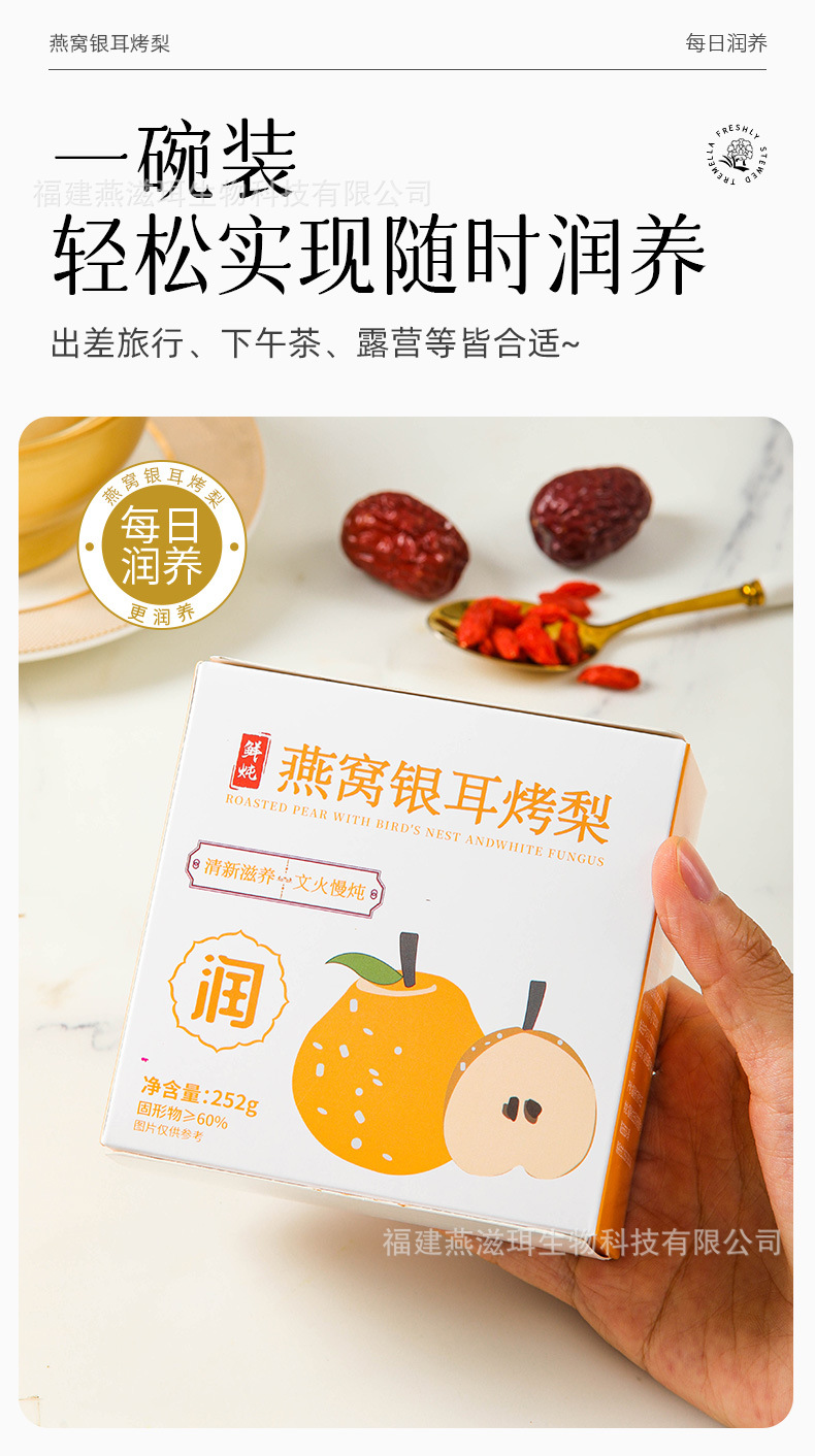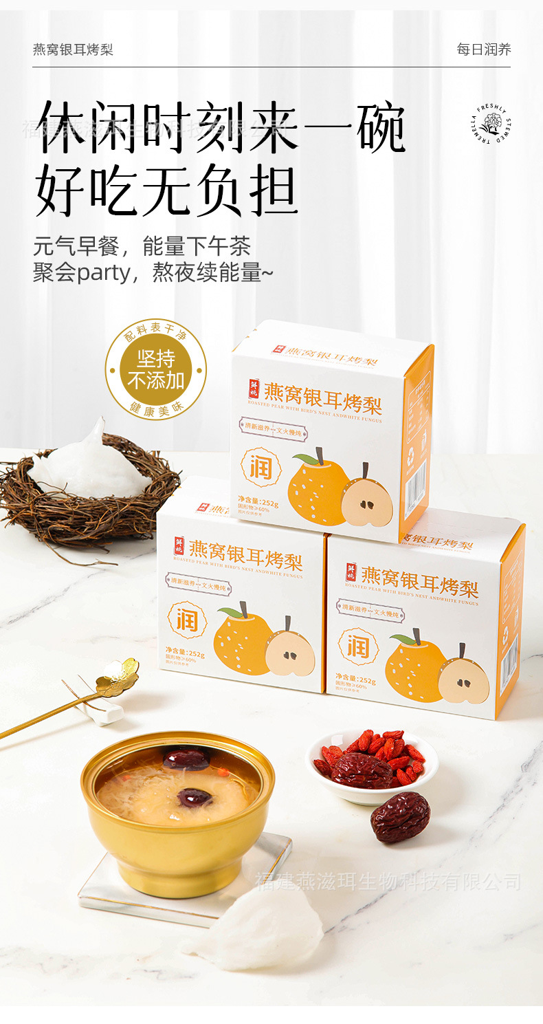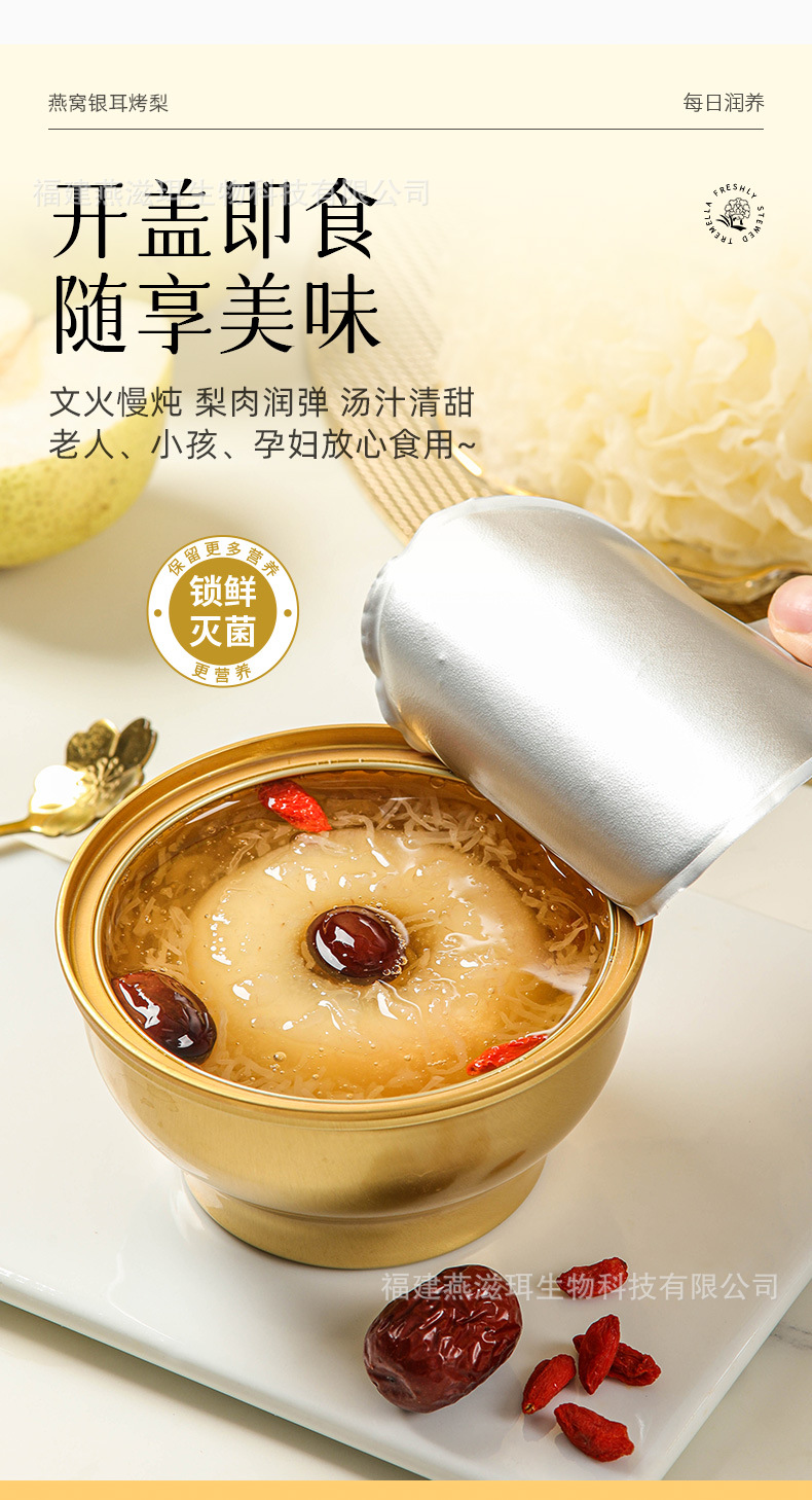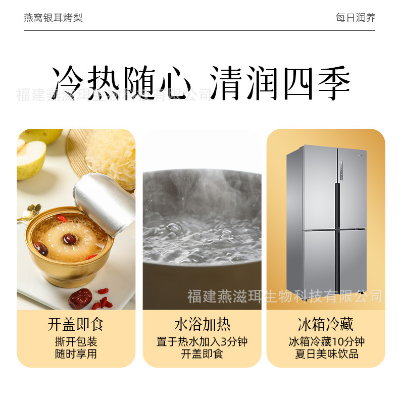 Yanzhi'er 新鮮な煮込みツバメの巣、白きくらげ、焼き梨、フルーツ缶詰、すぐに食べられるおいしい新商品