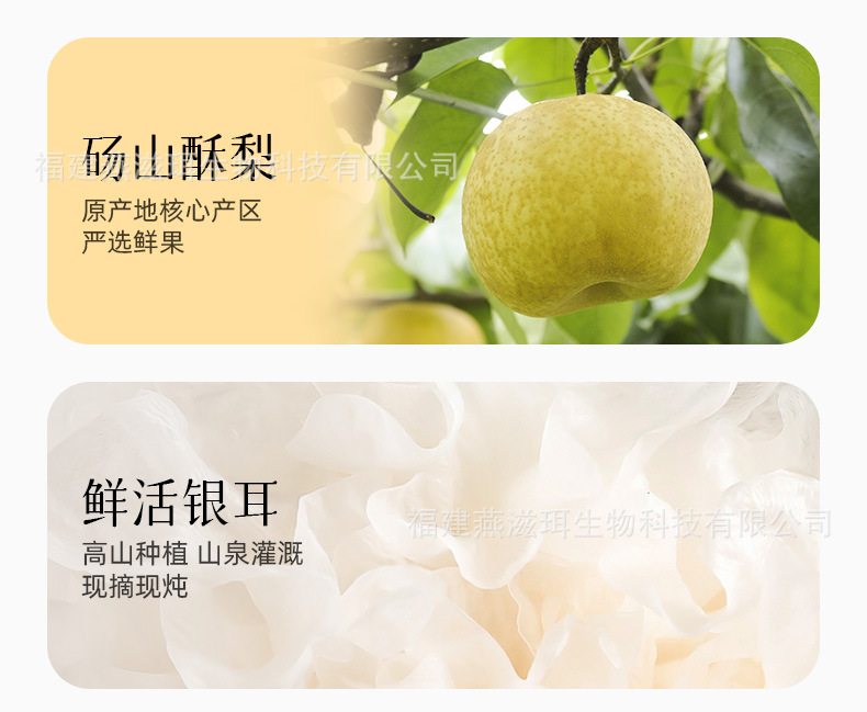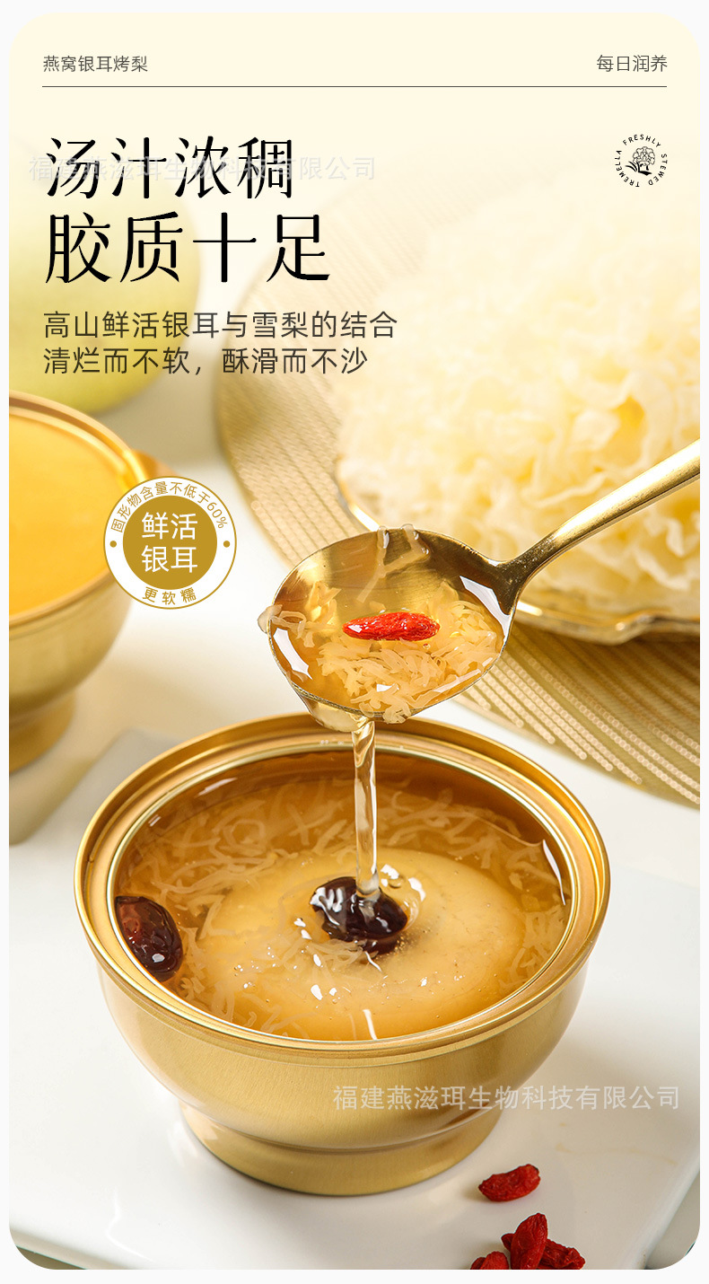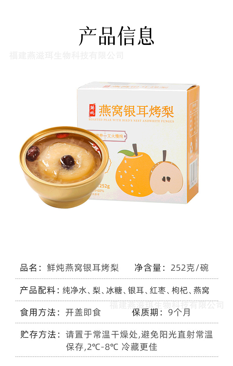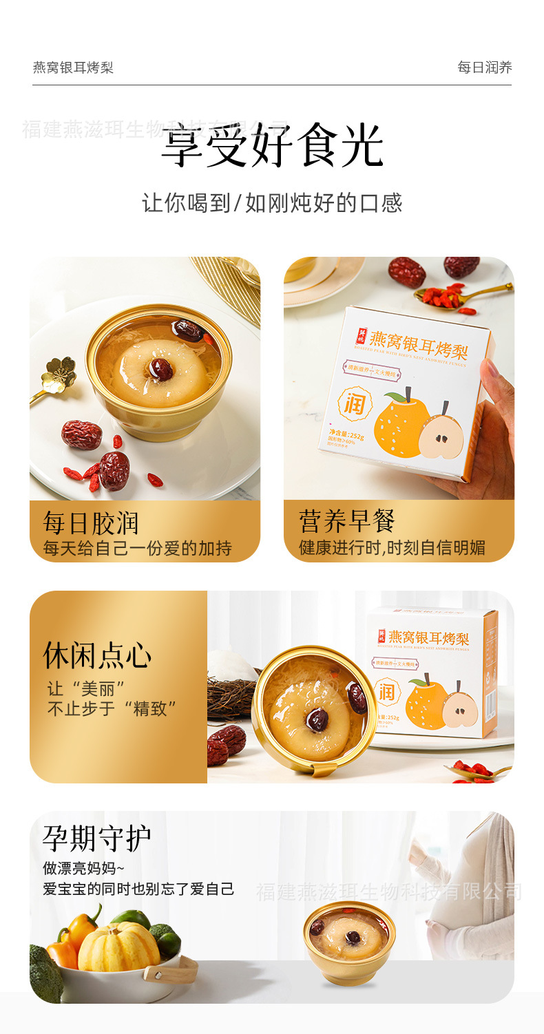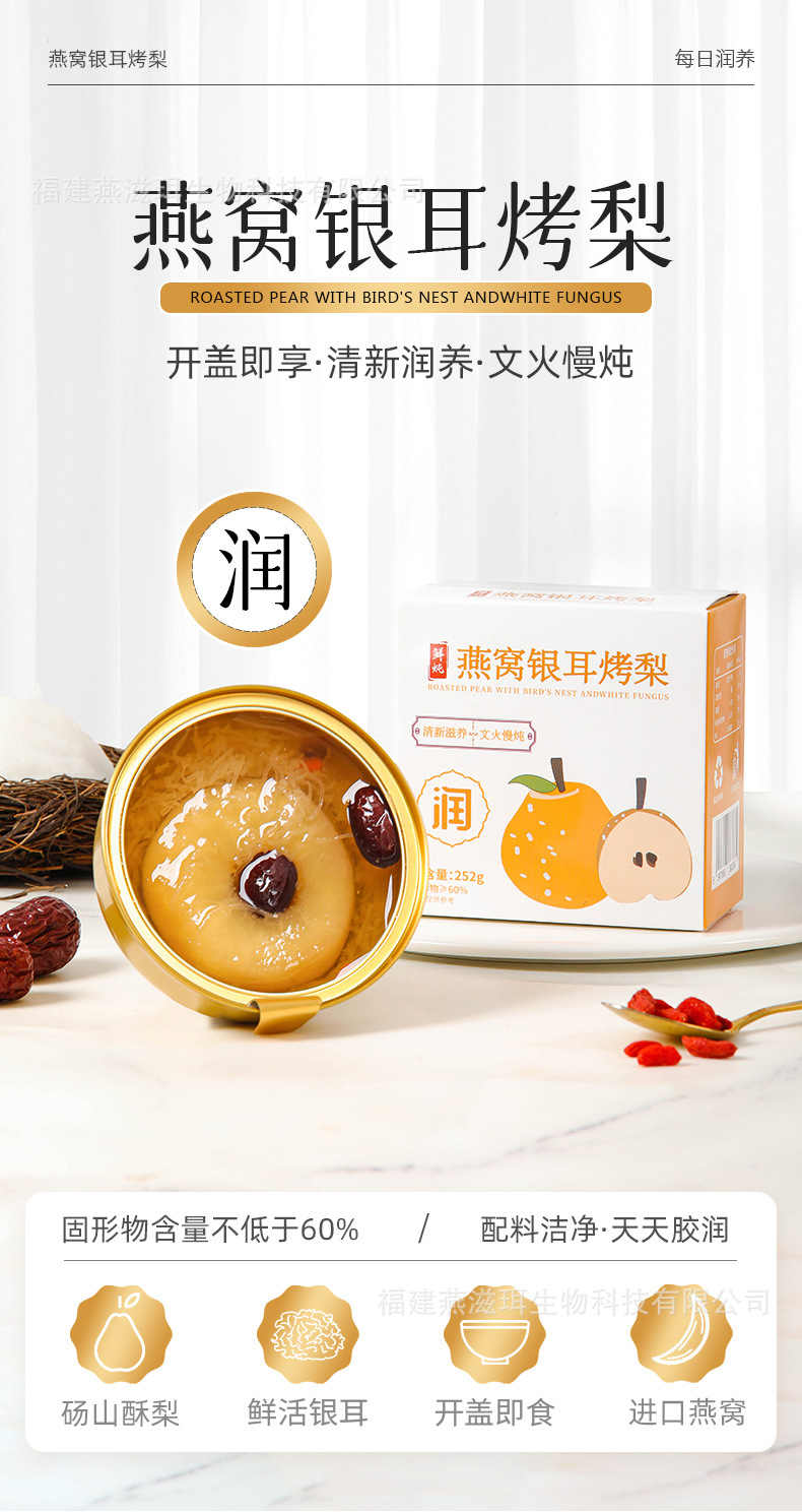 Yanzhi'er 新鮮な煮込みツバメの巣、白きくらげ、焼き梨、フルーツ缶詰、すぐに食べられるおいしい新商品