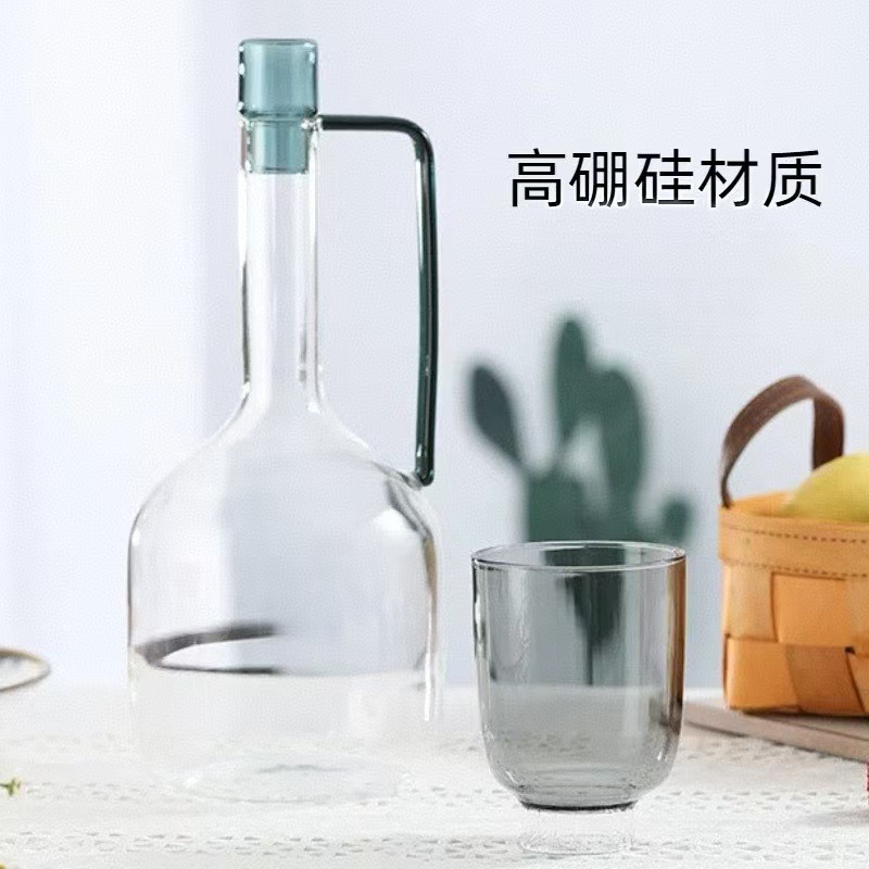 ヨーロピアンモダンシンプルエコガラスジュース高温耐熱ワイングラスインスタ風セットカップ冷水筒セット冷飲料