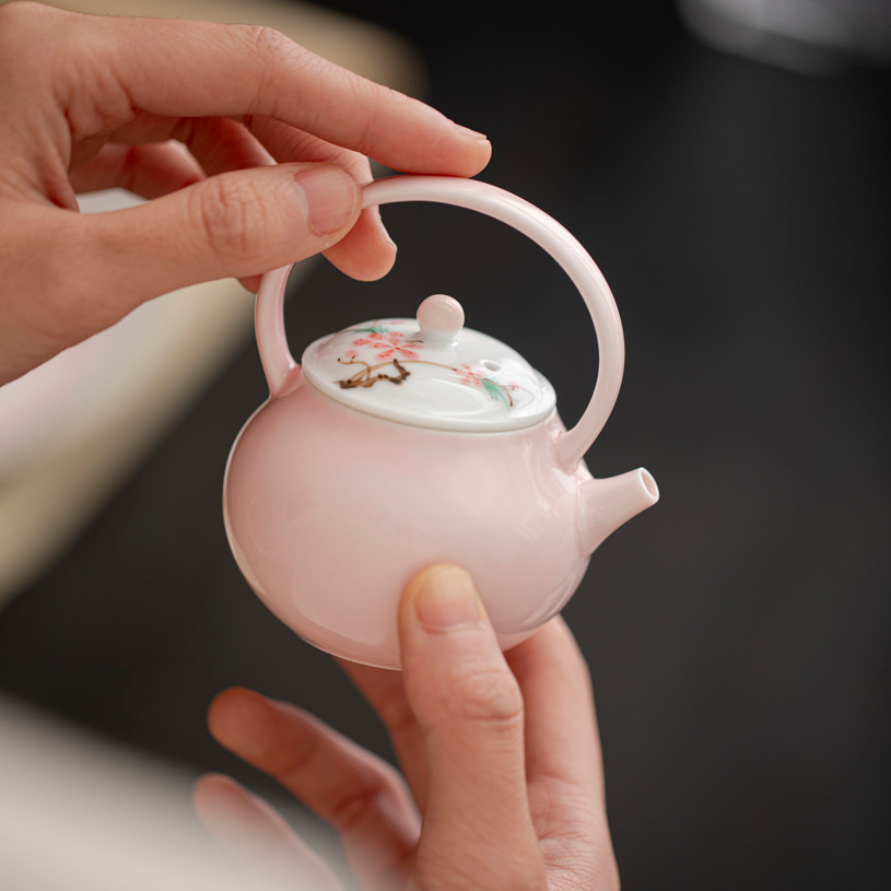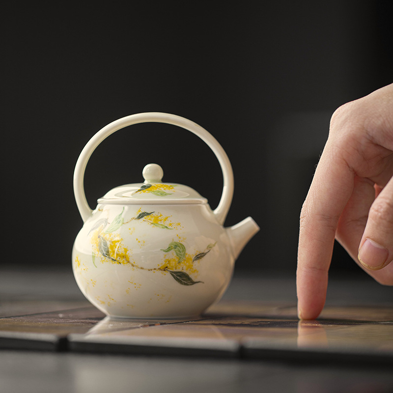 釉薬下彩純手描き桂花陶磁器提梁壺家庭用工夫茶道具文人泡急須中国式小壺単壺