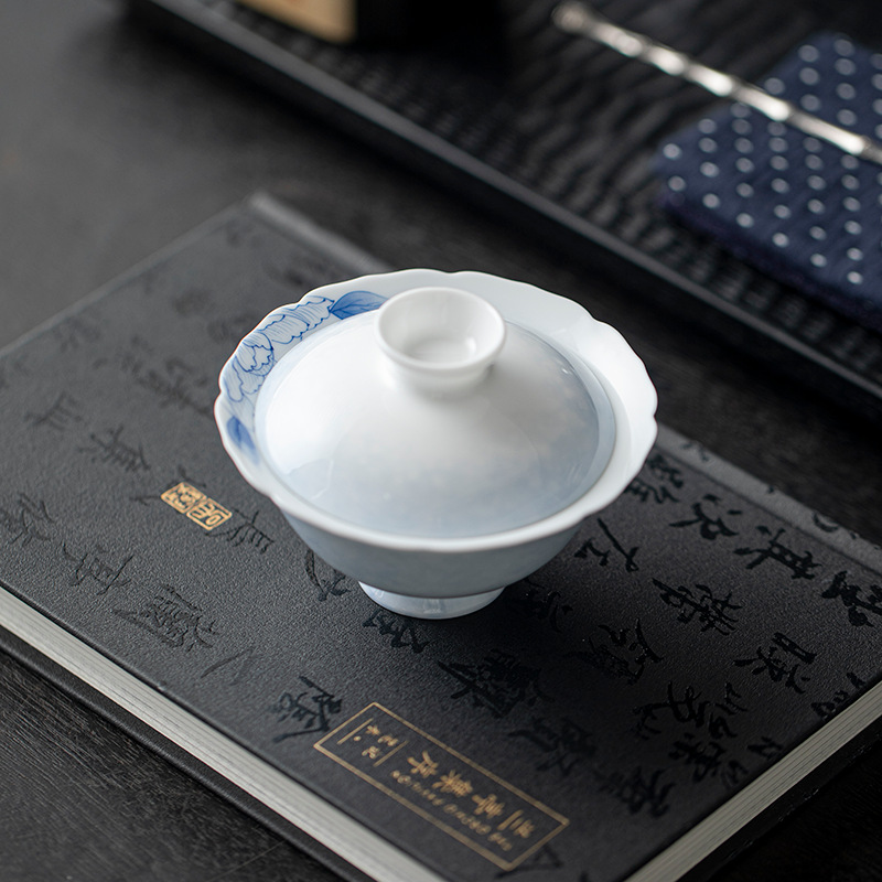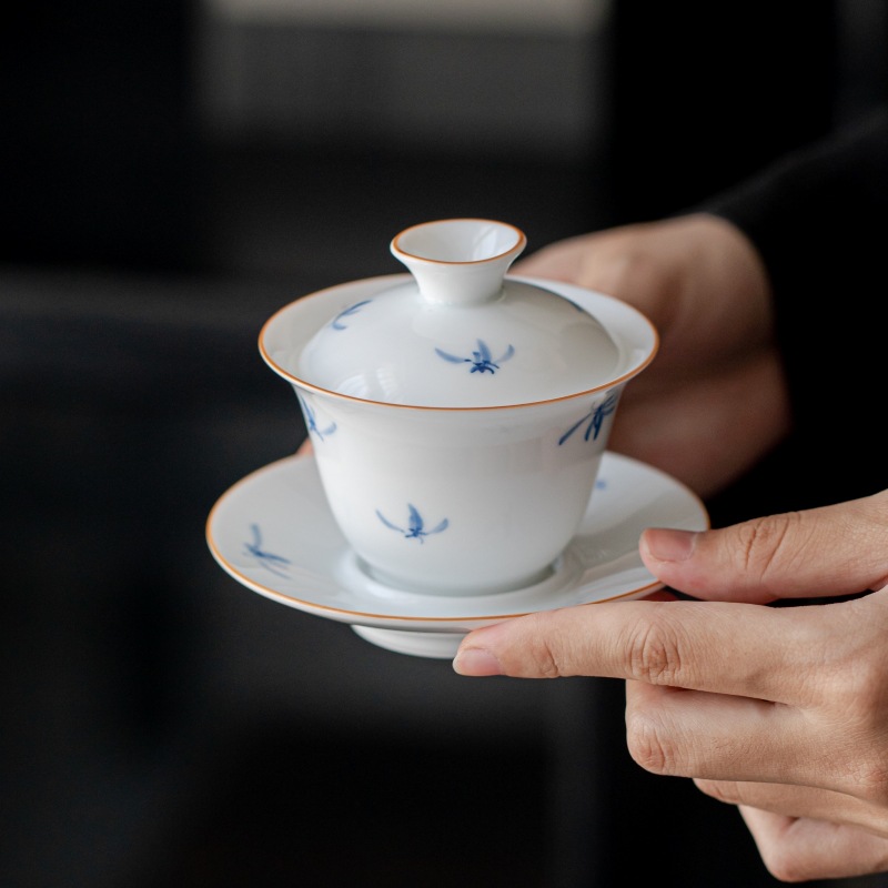 下絵色純粋な手描きの蝶と花の蓋付きボウル家庭用ティーカップは熱くない、小さな新鮮なカンフー茶セット
