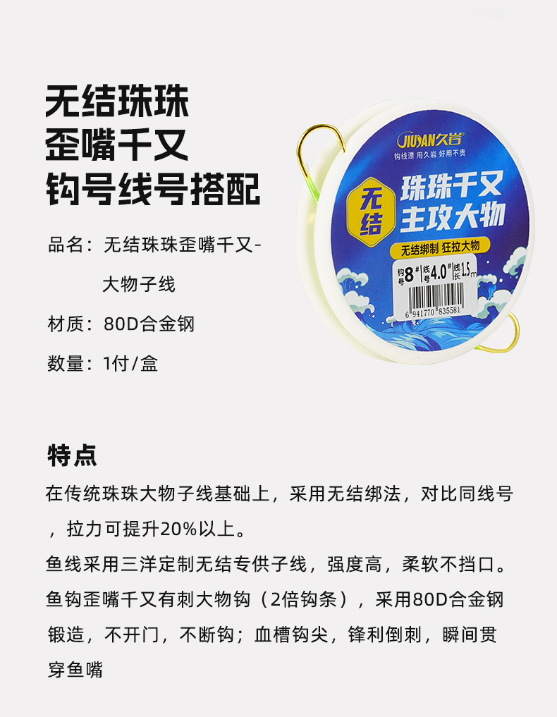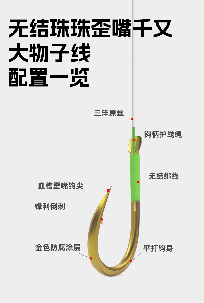 大物青鱼珠珠子线双钩珠珠金千又钩伊势尼钩手工精绑三护加固