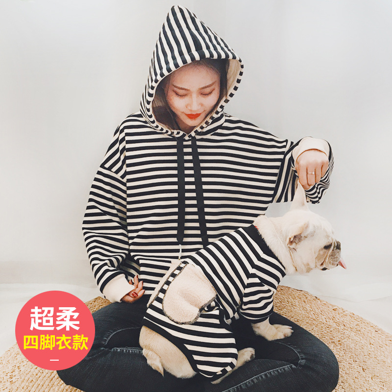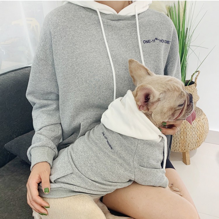 メーカー直販春秋新作ペット服テリーコットンカジュアルフード付きアルファベットパーカー犬大人親子服