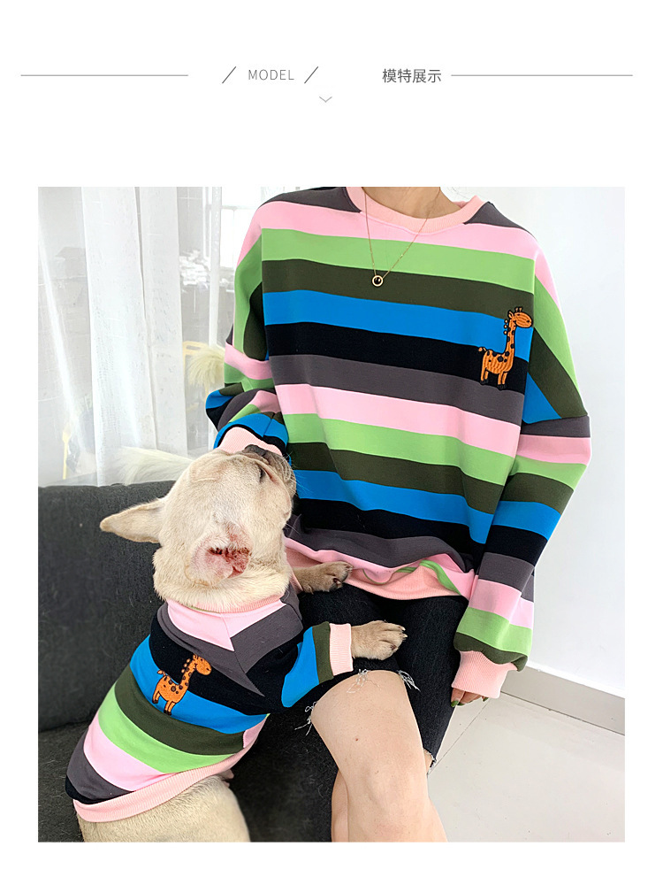 夏犬トレーナー韓国風子犬親子服テディストライプ綿 Tシャツ小型犬ガーフィールド猫二本足服