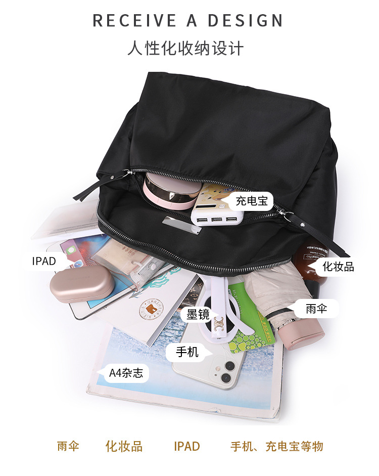 2025新型通勤バッグファッション百合ナイロン布学生カバン大容量旅行カバンリュックサック