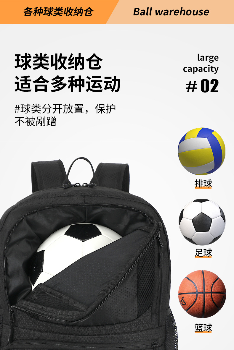 厂家生产跨境户外运动背包大容量篮球双肩包排球足球背包训练包