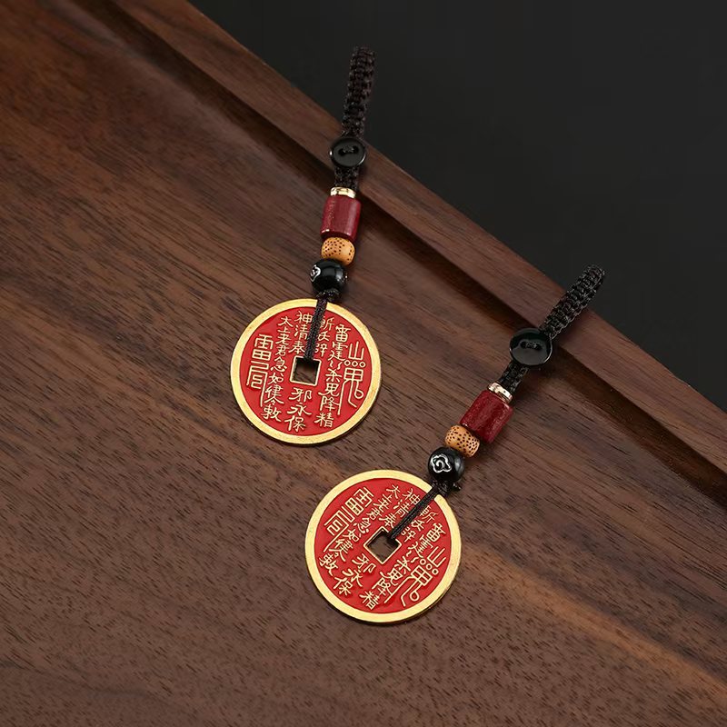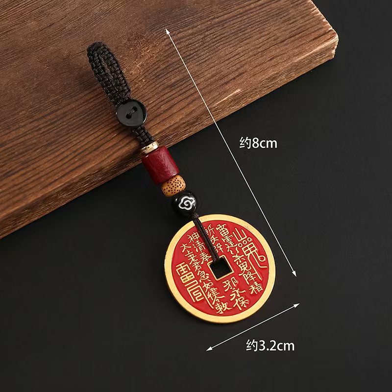 山の鬼花祥雲ロープアクセサリー銅貨編組ロープユニセックス車のキーホルダーペンダント金属工芸品