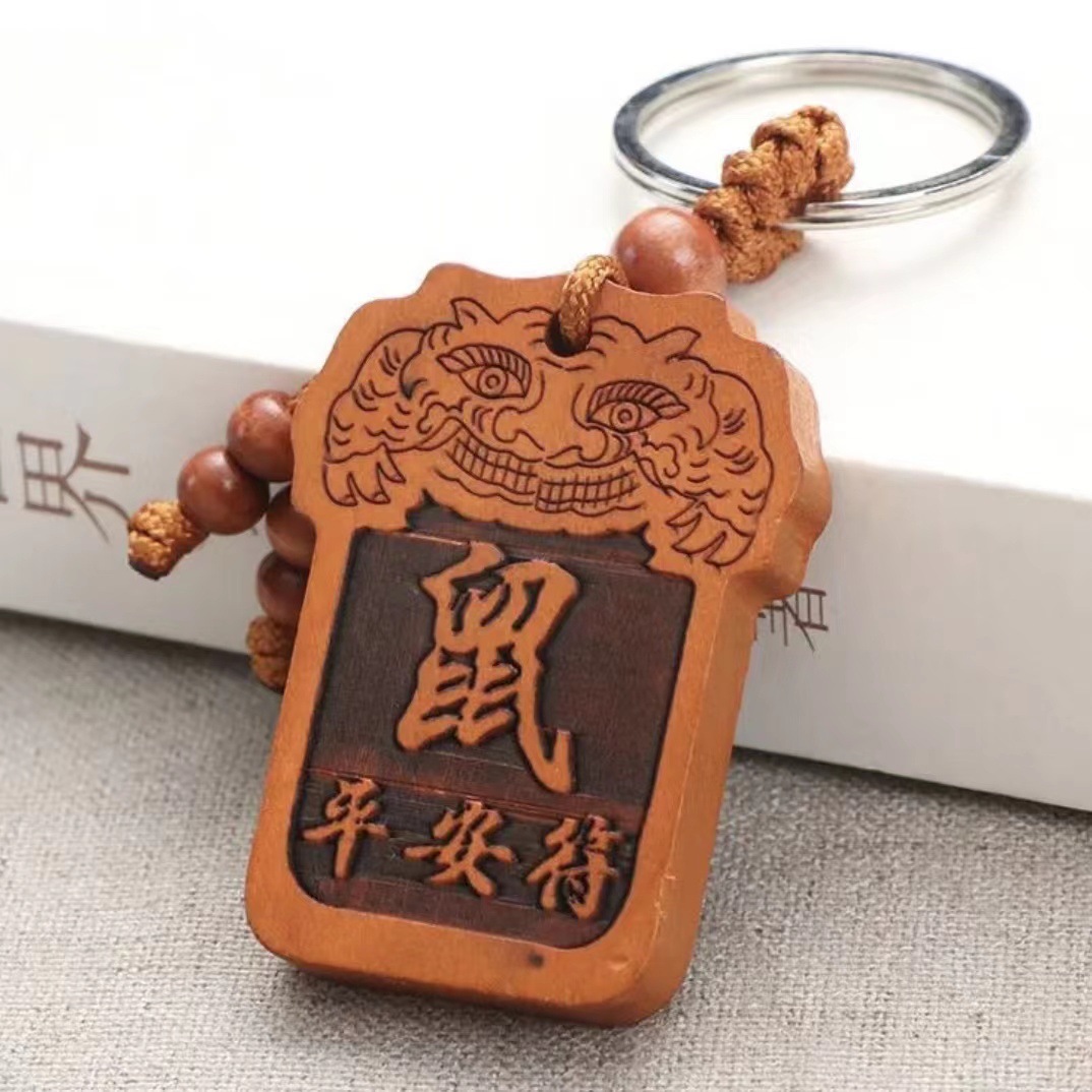 新型の十二生肖の桃の木のペンダントの12の付属品のペンダントの小さいアクセサリの男女の同項のキーホルダーのメーカーの卸売り