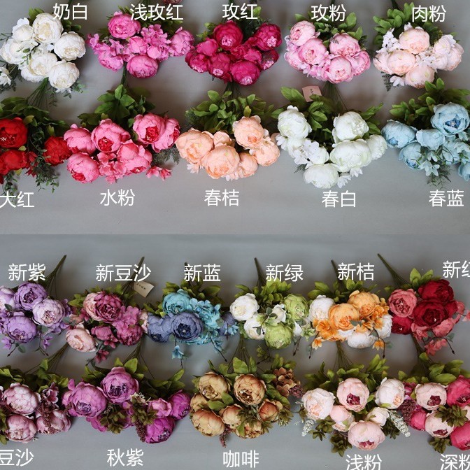 秋牡丹のシミュレーション花13叉の大きな束のつぼみの芯牡丹の家の結婚式の配置の花輪は花の絹布のシャクヤクを配合します。
