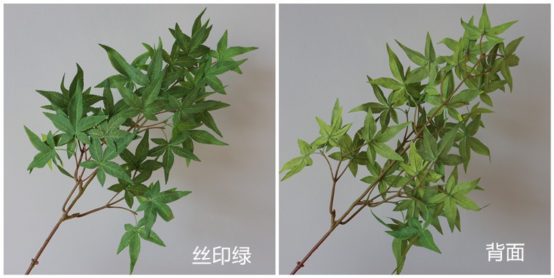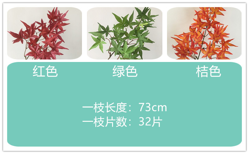 模擬カエデの葉、柔らかい質感のゴム質の枝、単一の赤いカエデの葉、庭園工学装飾の葉、模擬緑の植物、緑のカエデの葉