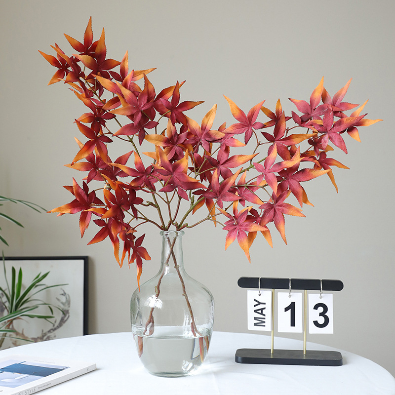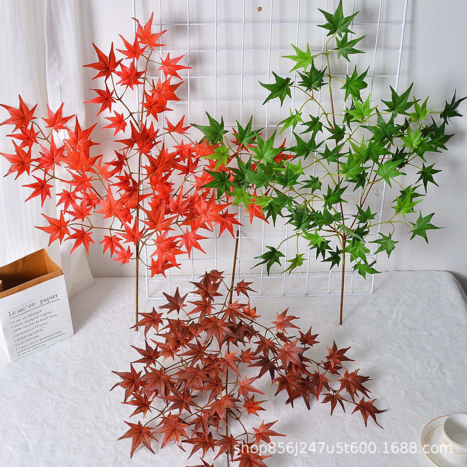 クロスボーダー3股模造カエデの葉、庭園景観装飾、結婚式の小道具、模造七つ葉カエデの葉
