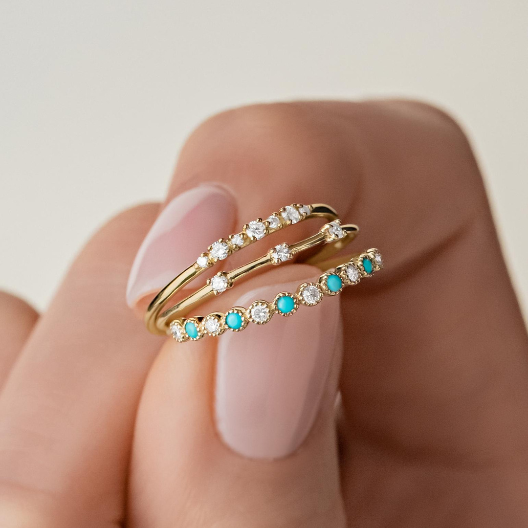 欧米の創意新商品の黄金の白い緑のジルコニウムのダイヤモンドの円形のシンプルで清新な大気の3つのセットの指輪