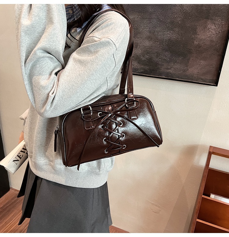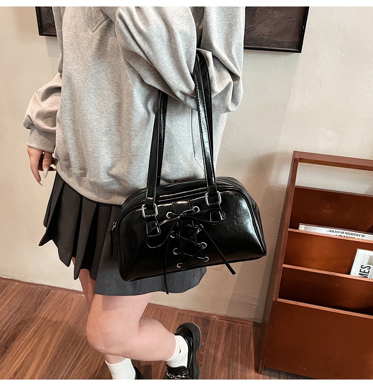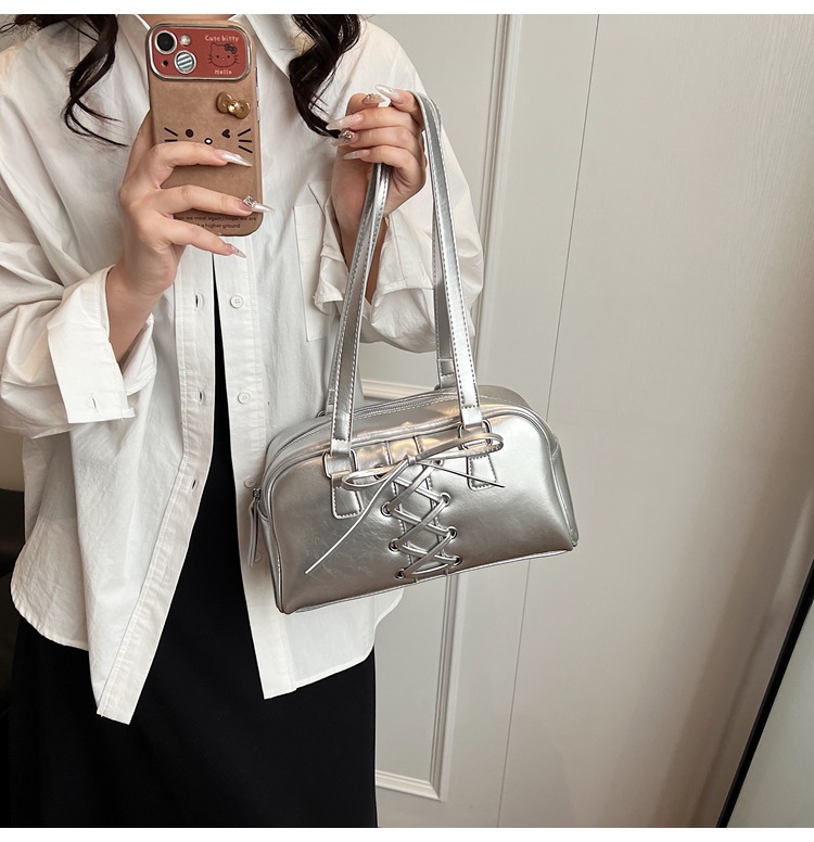 韓国系の高級な質感の包みの女性の2024秋の新商品のファッションの百合のシンプルな肩の脇の下の包みの新月の包みの女性