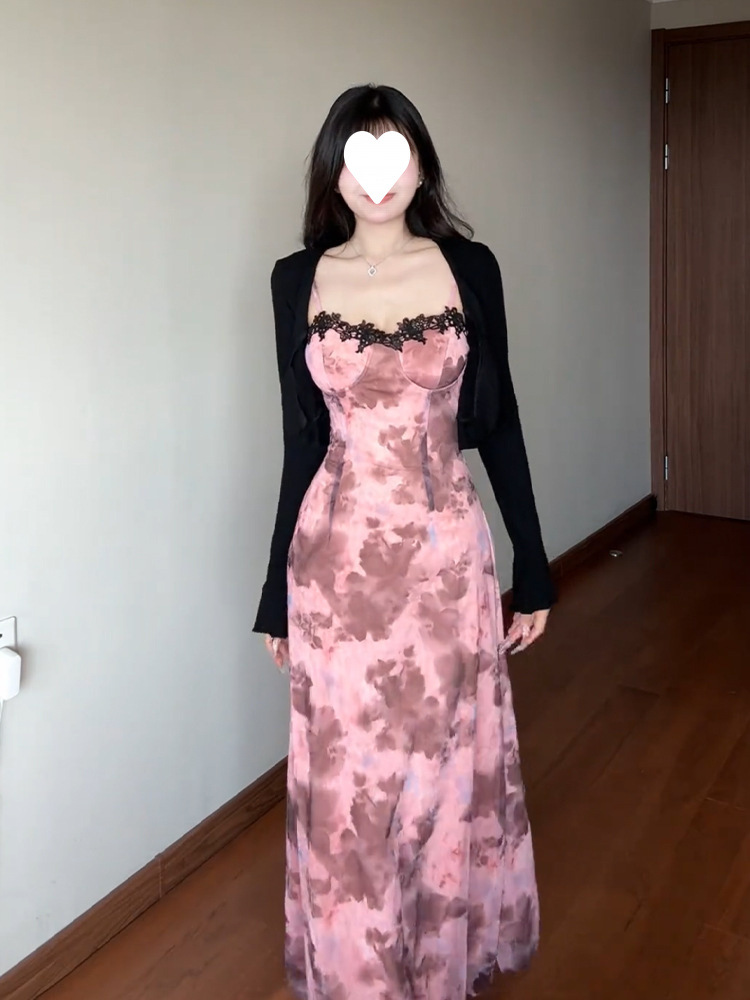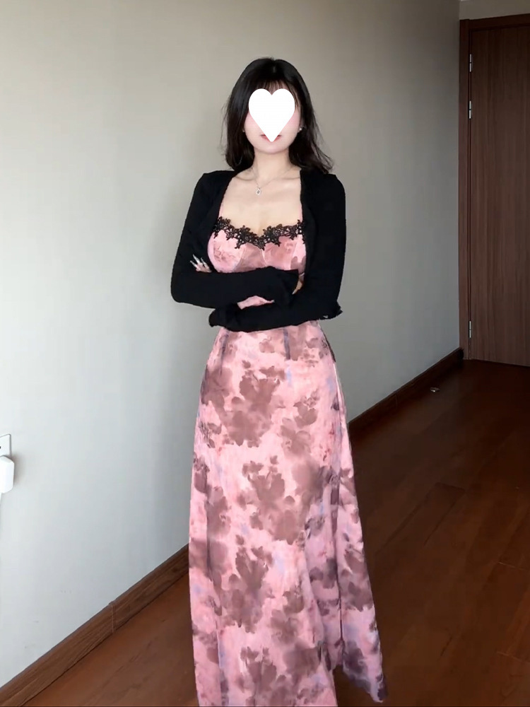 純欲風レースはストラップのワンピースセットの女性の夏の薄いタイプの日焼け止めのカーディガンの甘くて辛いです。