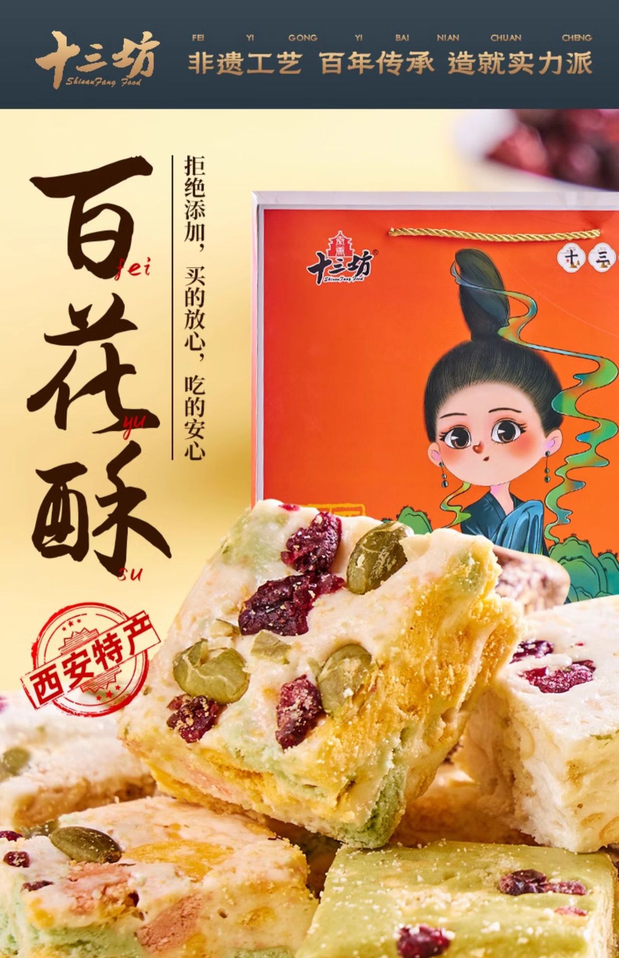 十三坊貴妃ショートニング陝西西安特産回民街貴妃雪花ショートニング観光地区同手ギフトボックス