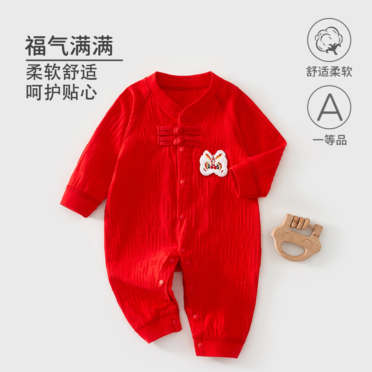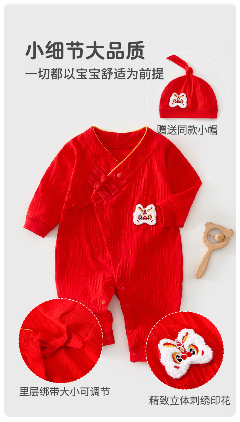 赤ちゃんは新年を祝って赤ちゃんの連体服を着ます。