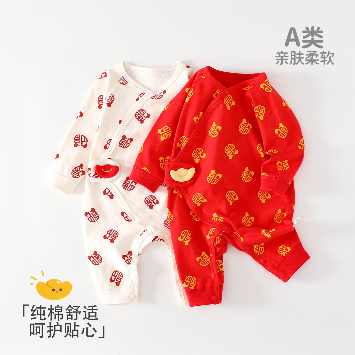 新生児純綿a類服装偽二枚赤ちゃん連体服百日満月赤ちゃん服安陽子供服