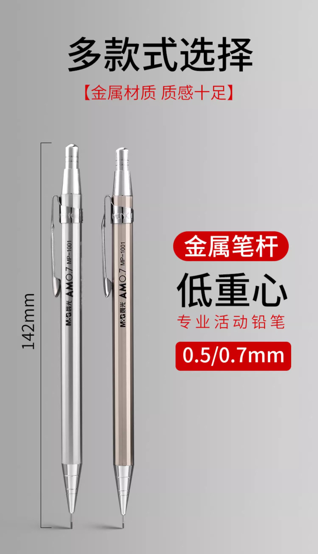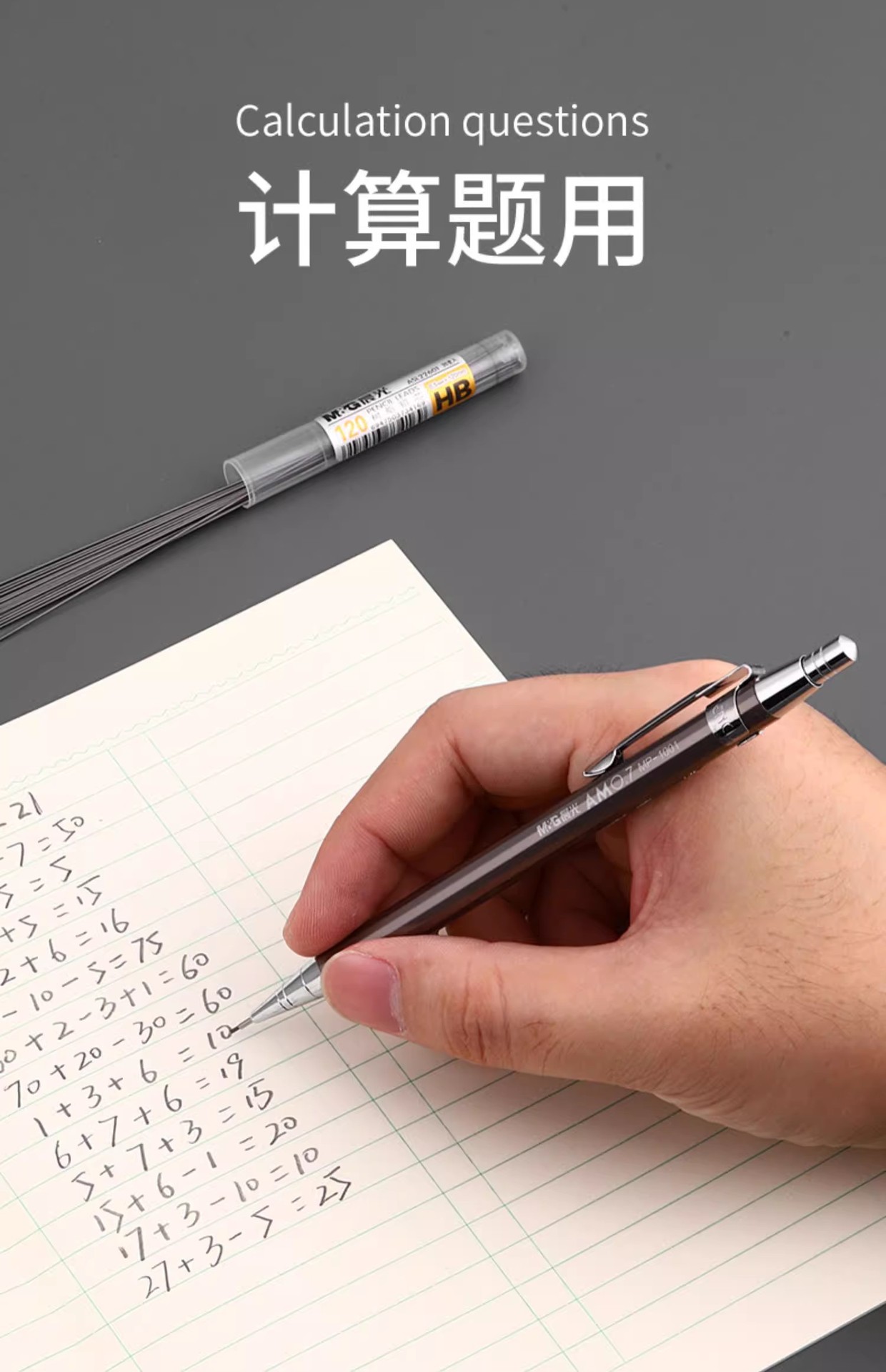 朝光MP1001シャープペンシル0.5mm学生用0.7押し铅笔绝えず芯全金属シャープペンシル