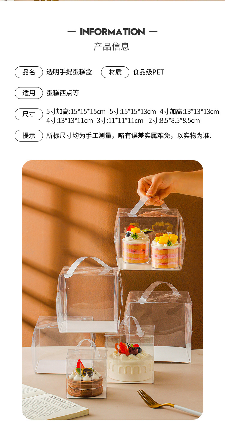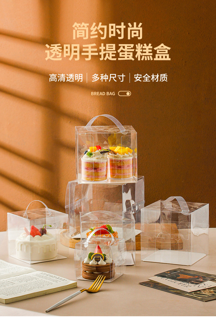 ケーキ箱四五寸三寸四寸五寸六寸八寸透明手提げ西点爆糊ムースケーキ包装箱