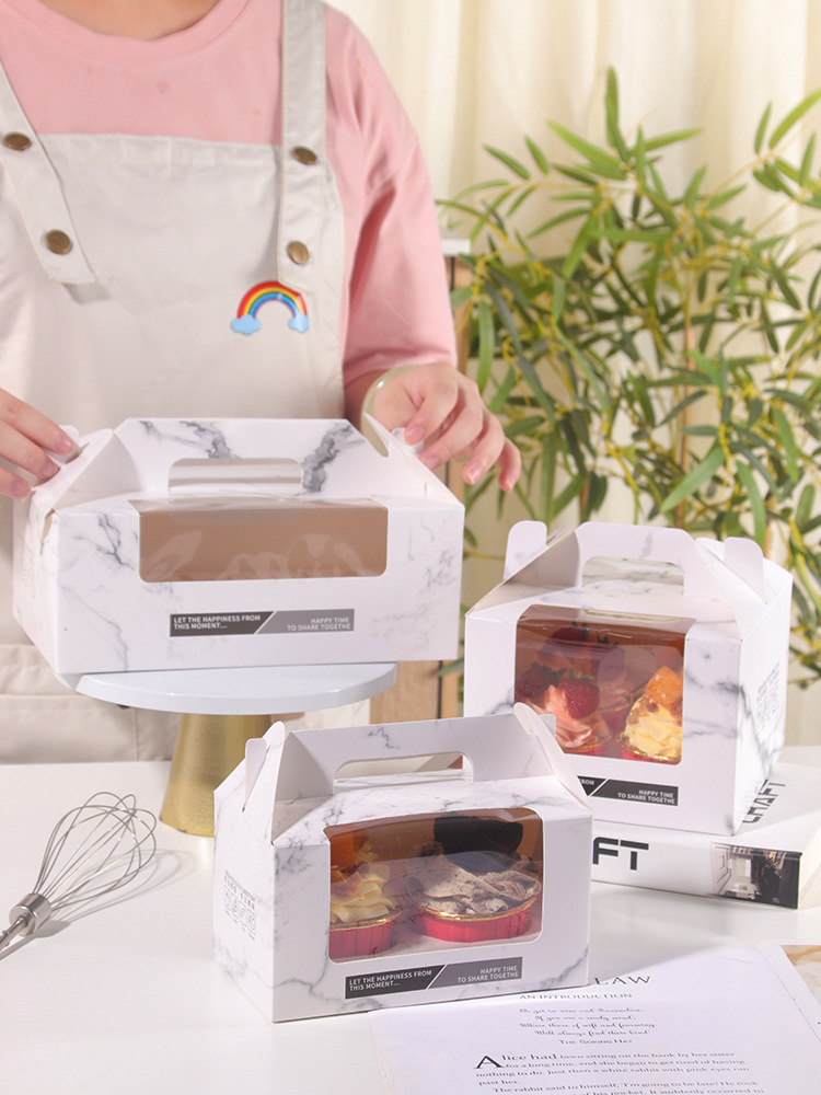大理石の紋様は馬芬の箱の丸い紙コップのケーキの包装箱の丸い穴の卵黄のショートニングの箱の現物の卸売りを持ちます。