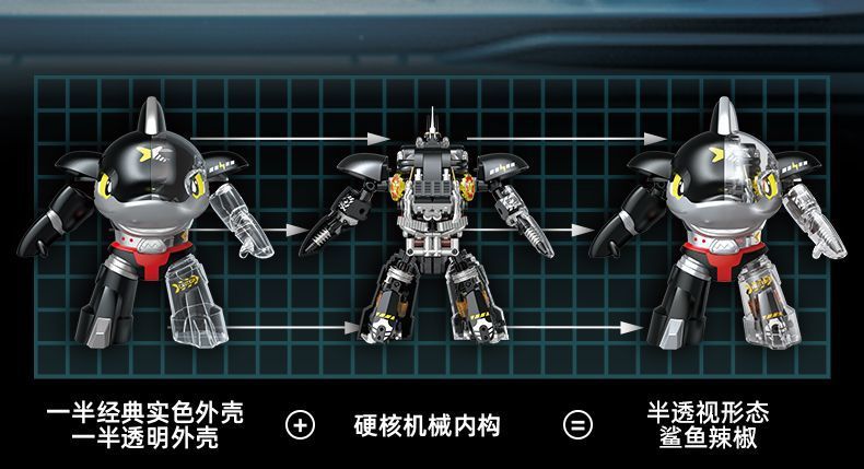 鉄甲の赤ちゃんのサメの唐辛子の半機械の大体の組み合わせのロボットの人形の積み木の機械の甲はおもちゃを作ります。
