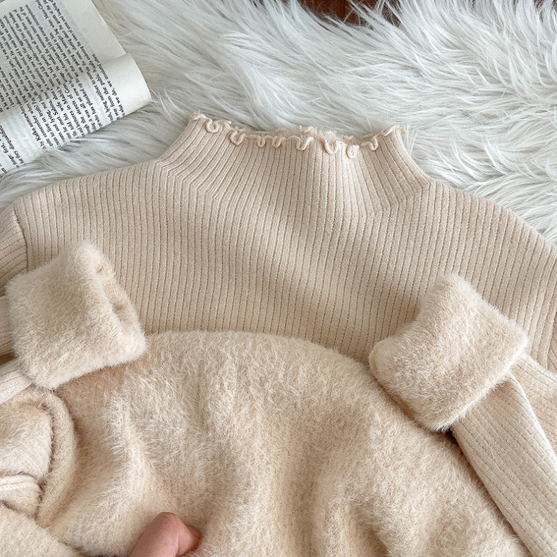 半高襟セーターの女性は秋冬にベルベットを着て一体のベルベットの空気ニットの保温シャツの上着を厚くする