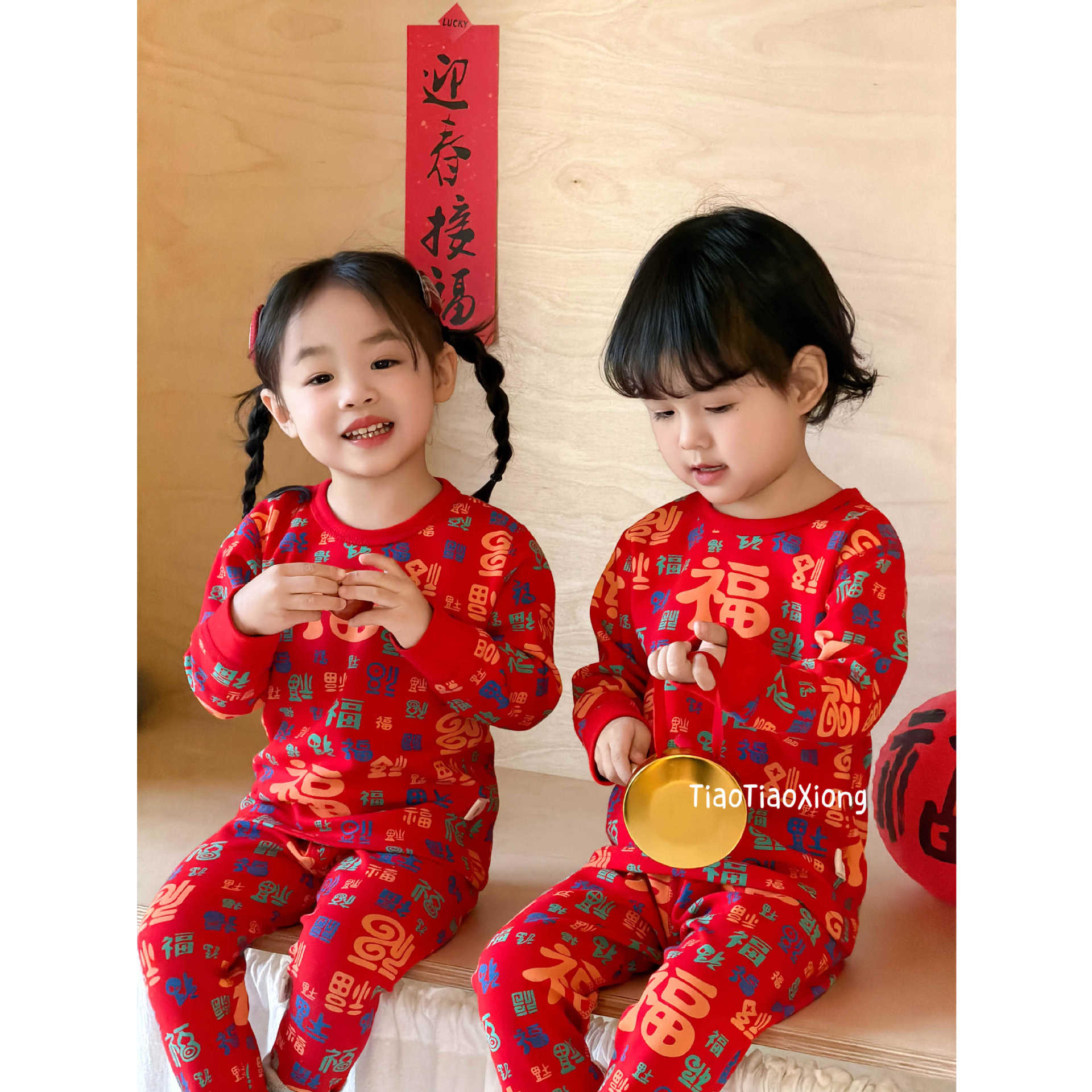 子供用下着セット 男女兼用 純綿 秋服 秋パンツ 真っ赤な色の本命年用パジャマ ホームウェア 厚手タイプ