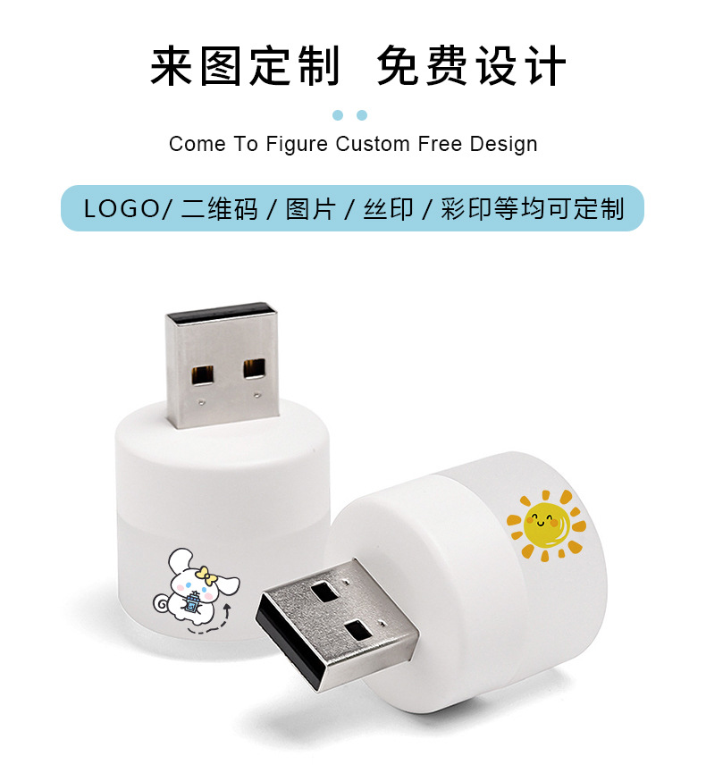 产品特点:USB小夜灯,跨境热卖附带证书、能效;便携式USB接口直插式供电,迷你小夜灯,冷光、暖光、2种选择,低能效不费电,新奇特USB创意小夜灯,床头USB、笔记本USB、移动电源USB接口均可使用!支持移印、彩印、镭射等多种工艺定制logo图案、定制包装、定制颜色、定制灯光均可!大量现货,欢迎新老客户下单!